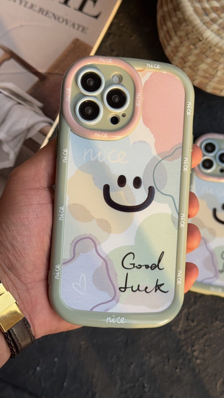 قاب موبایل آیفون لبخند قلبی محافظ لنزدار + بندست