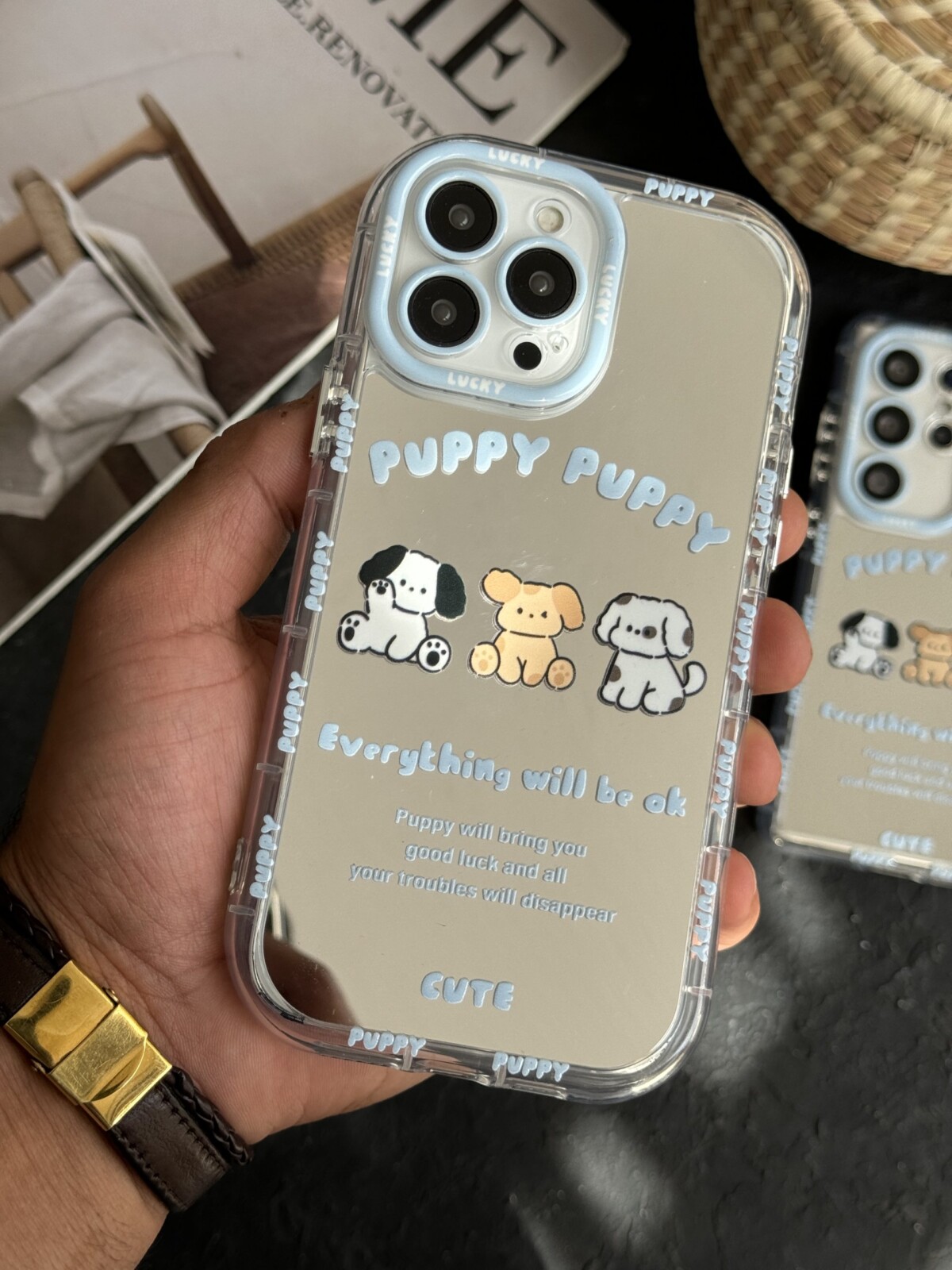 قاب موبایل آیفون سه سگ پاپی پاپی آیینه ای آبی
