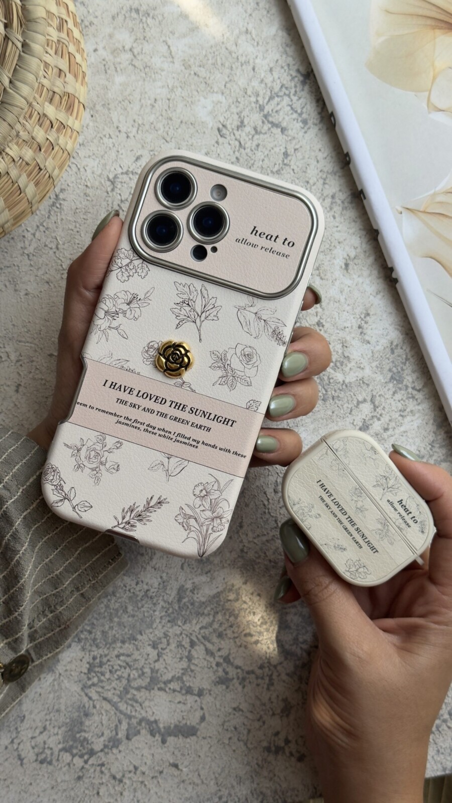 قاب موبایل آیفون گل رزا نرا جاکارتی دار + بندست اسکارف
