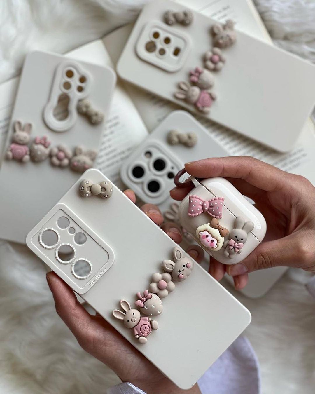 قاب موبایل آیفون شهر موش ها و خرگوش برجسته سفید