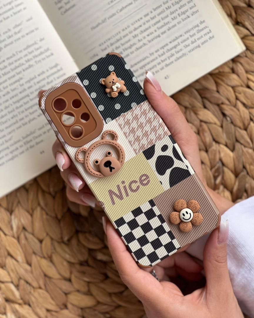 قاب موبایل سامسونگ دختر و بیسکوئیت برجسته قهوه ای کرم محافظ لنزدار