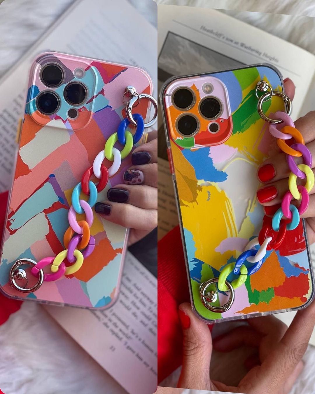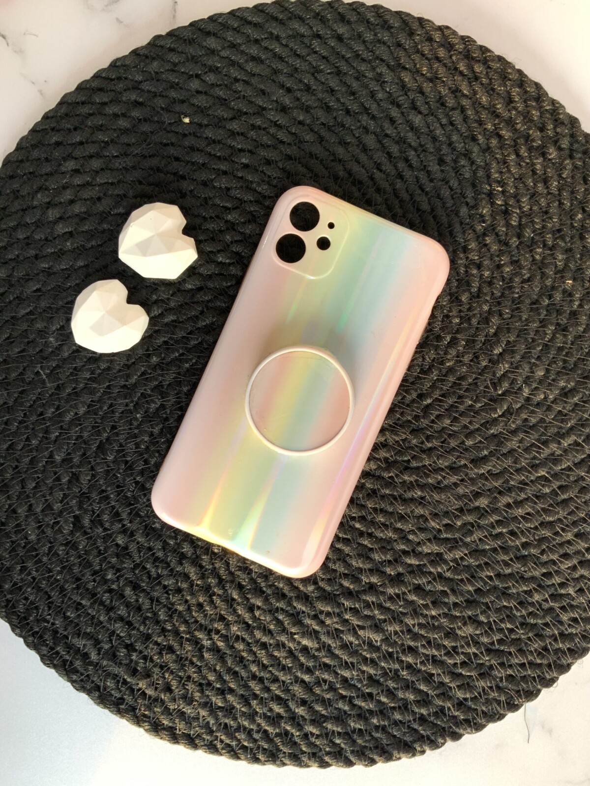 قاب موبایل آیفون رنگین کمانی مینیمال عمودی + پاپ سوکت