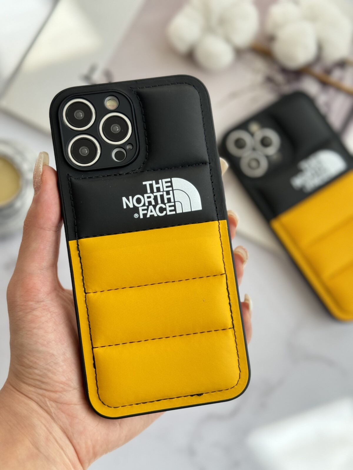 قاب موبایل آیفون پافر دورنگ مشکی زرد