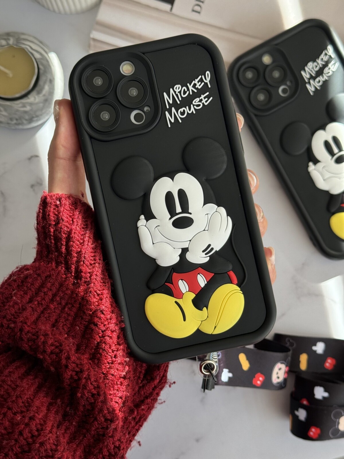 قاب موبایل آیفون میکی برجسته سولید مشکی بدون بند