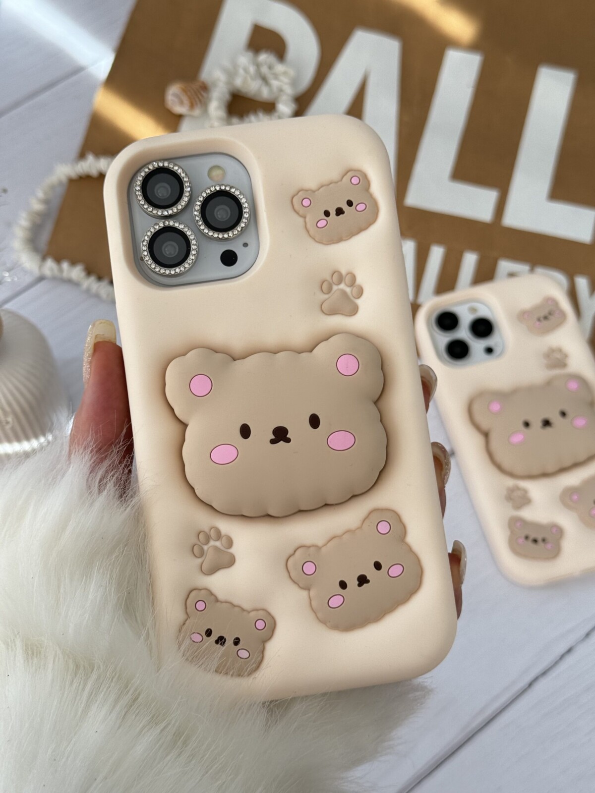 قاب موبایل آیفون خرس نیوفیس پاپسوکت برجسته