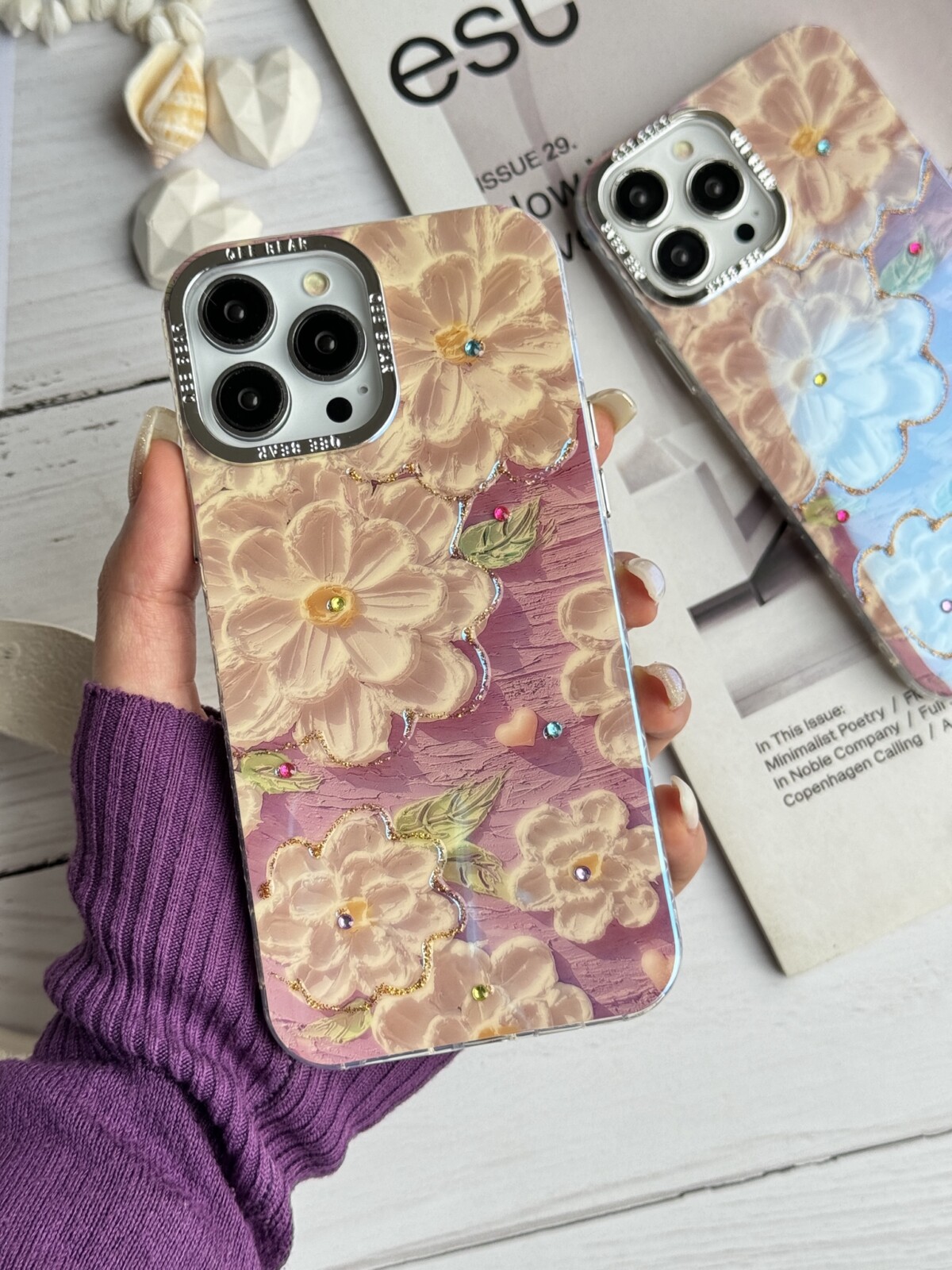 قاب موبایل آیفون گل خامه ای بنفش