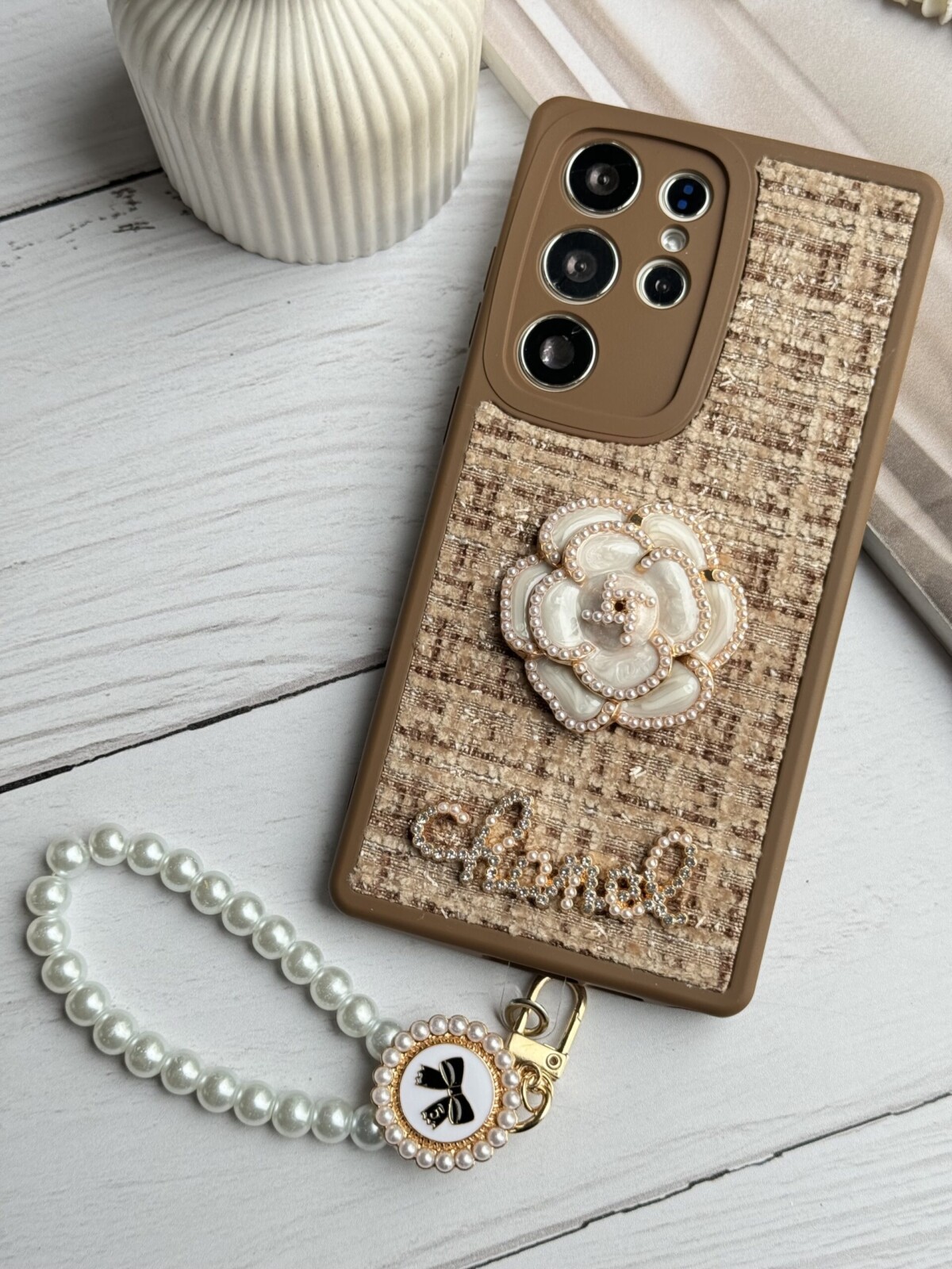 قاب موبایل سامسونگ شنل گل حصیری + بندست