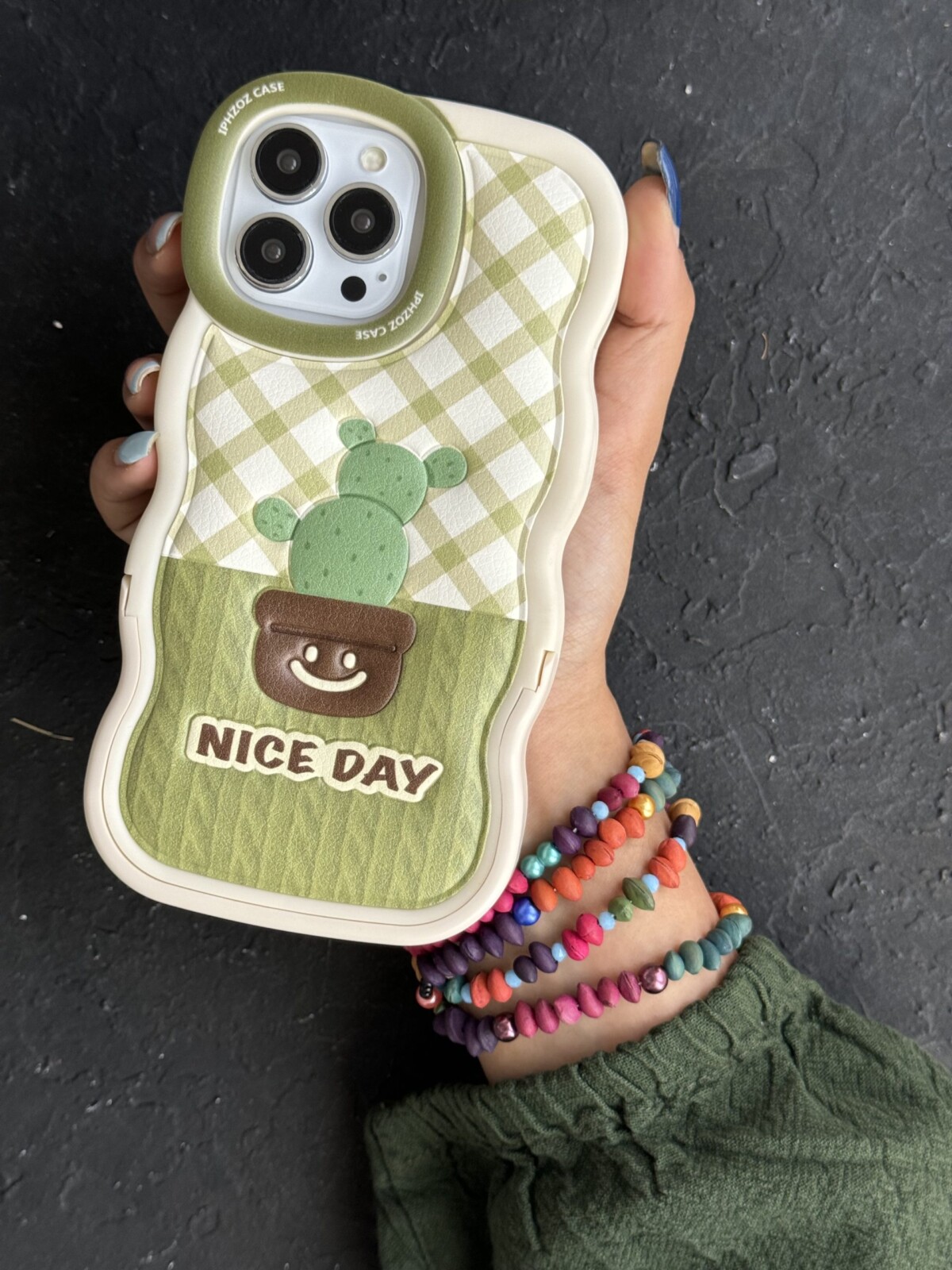 قاب موبایل آیفون کاکتوس سبز روز خوب پایه استندشو