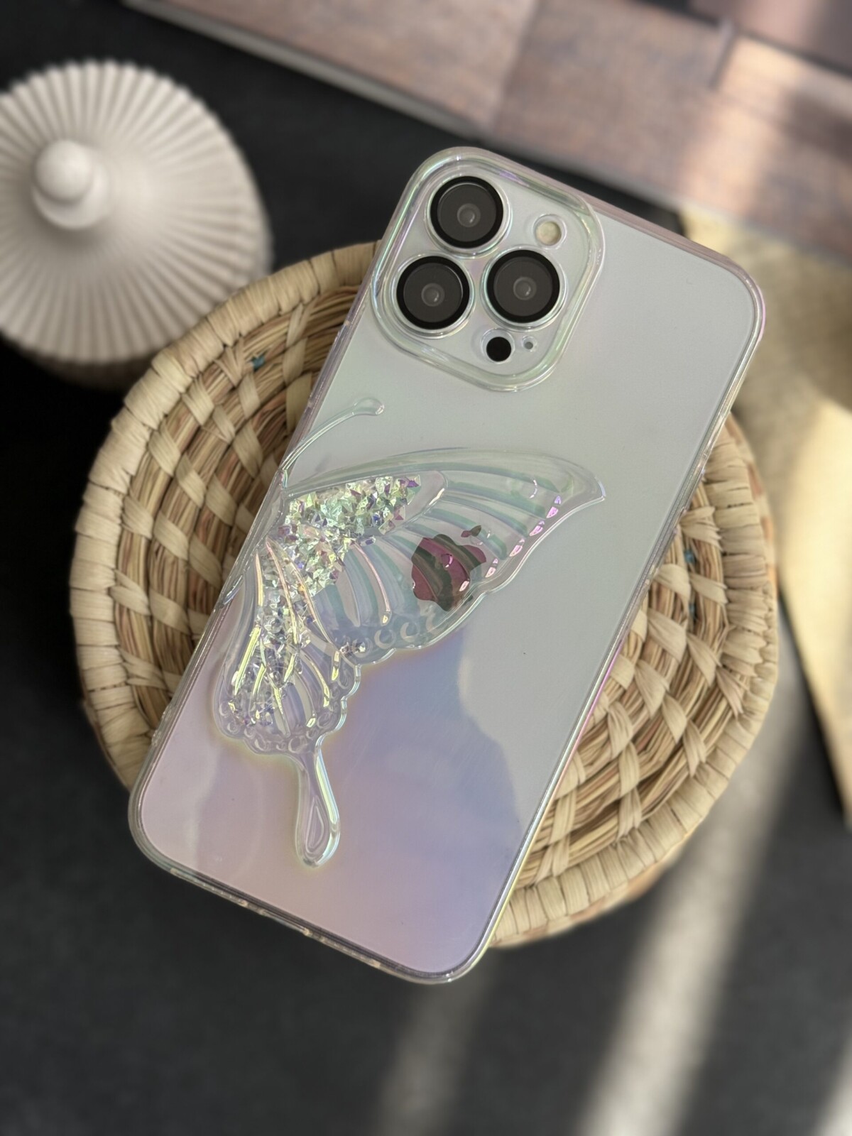 قاب موبایل آیفون پروانه هلوگرامی تک بال بیرنگ