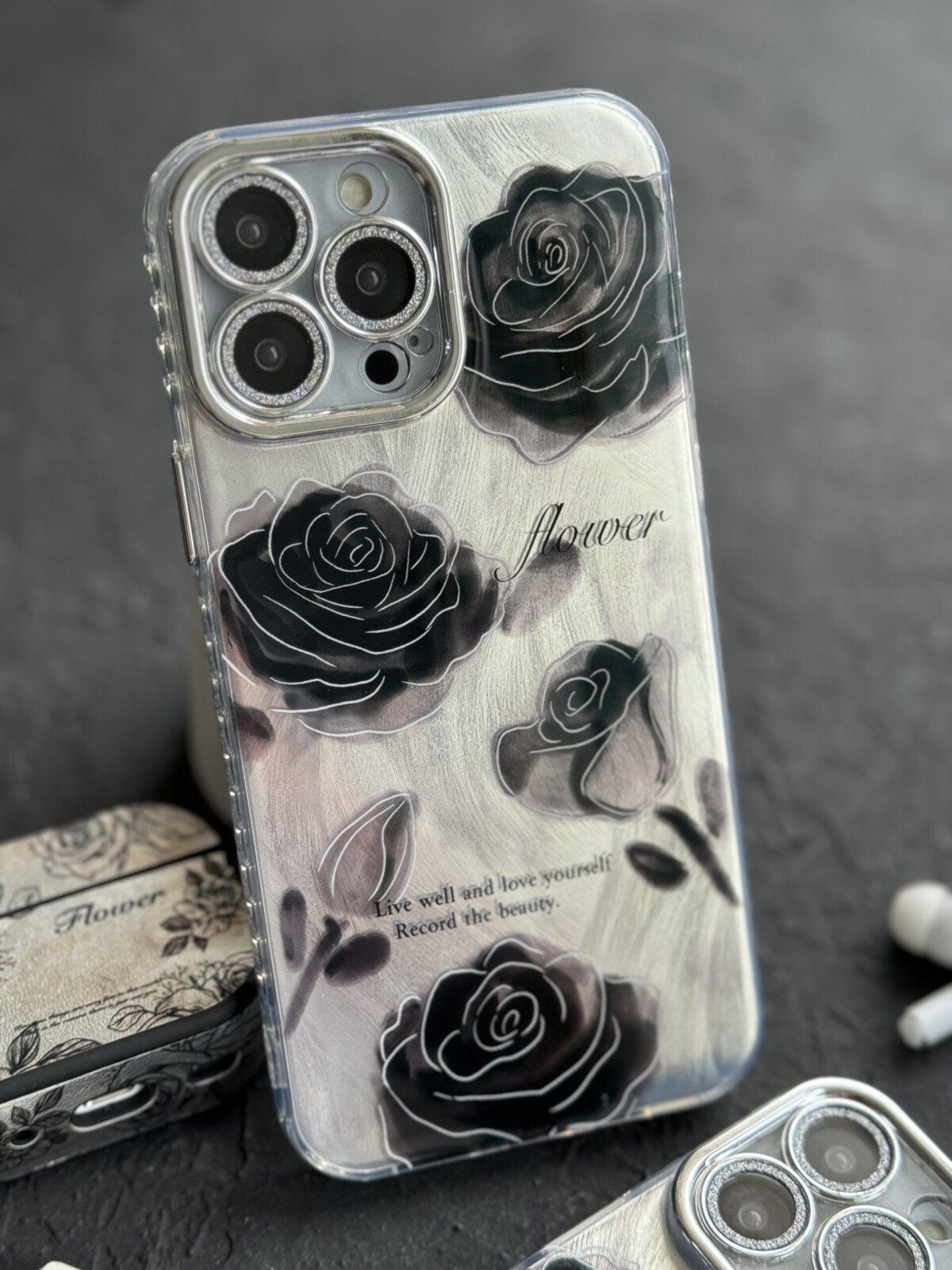 قاب موبایل آیفون گل شب محافظ لنز نگین دار