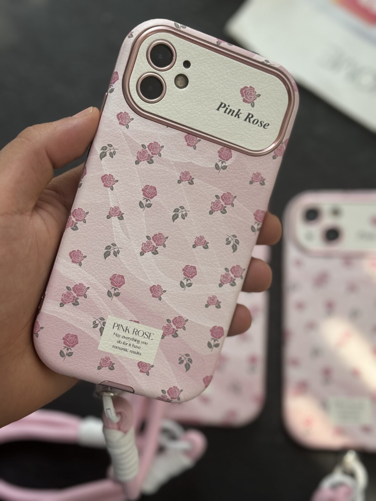قاب موبایل آیفون شاخه گل رز صورتی بدون بند