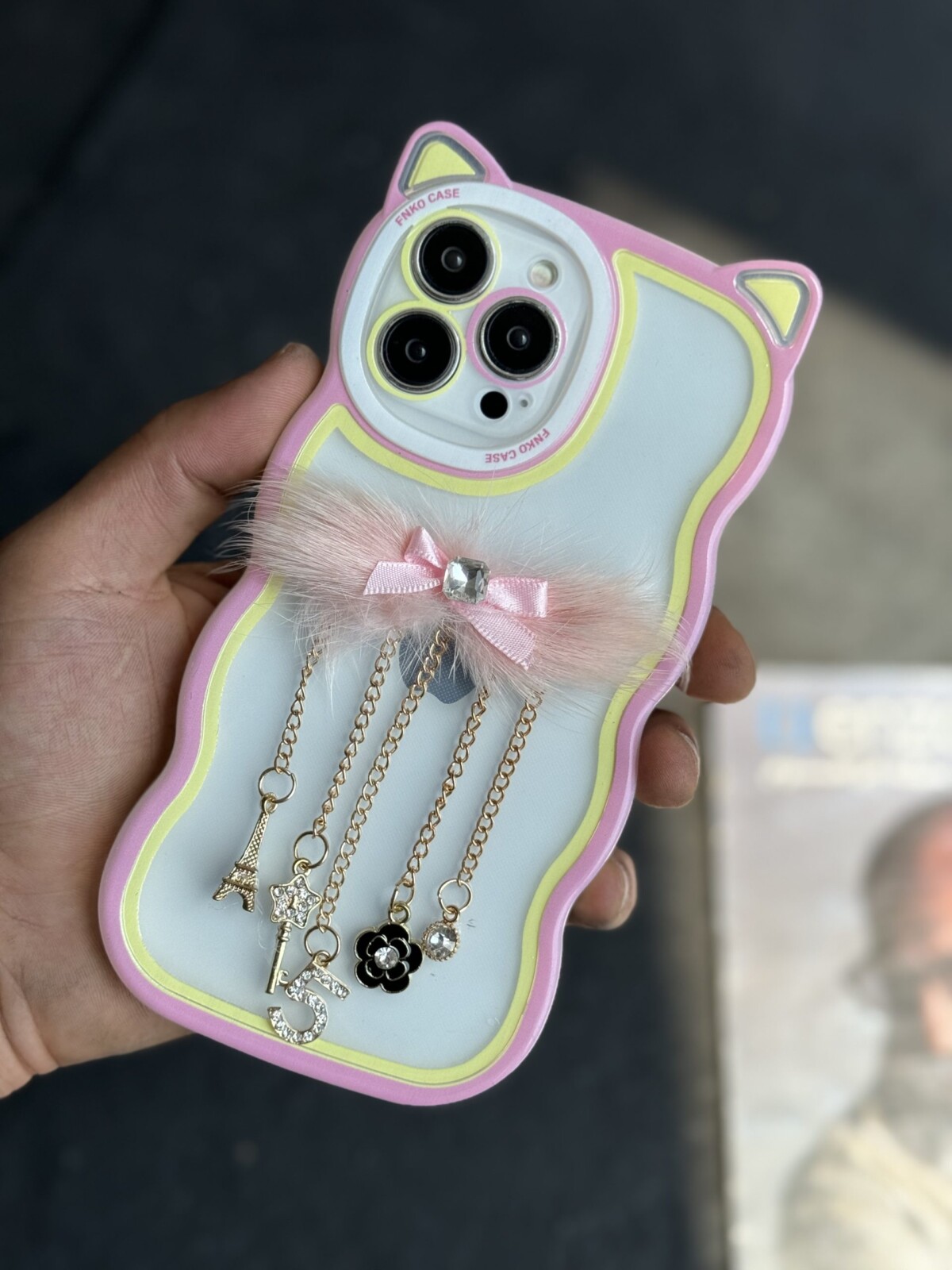 قاب موبایل گربه آویزدار پاریس و شنل