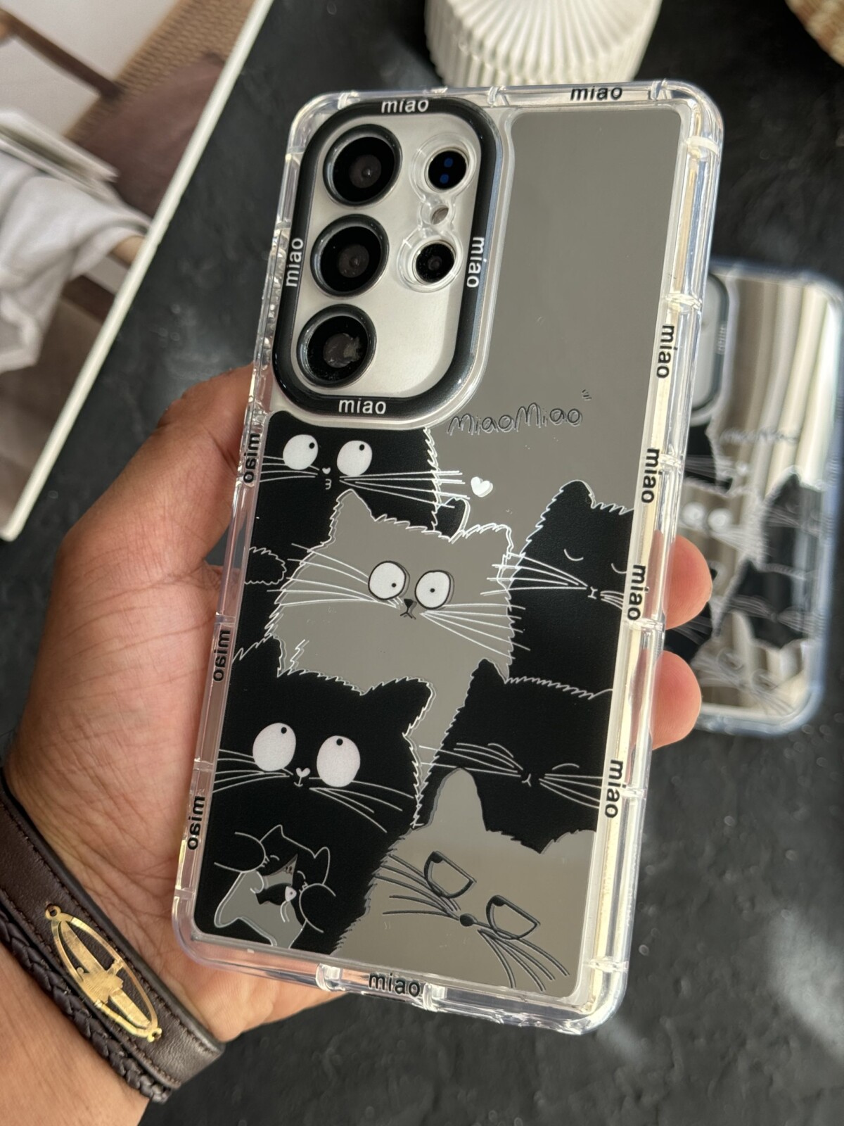 قاب موبایل سامسونگ گربه بلک اند وایت آیینه ای