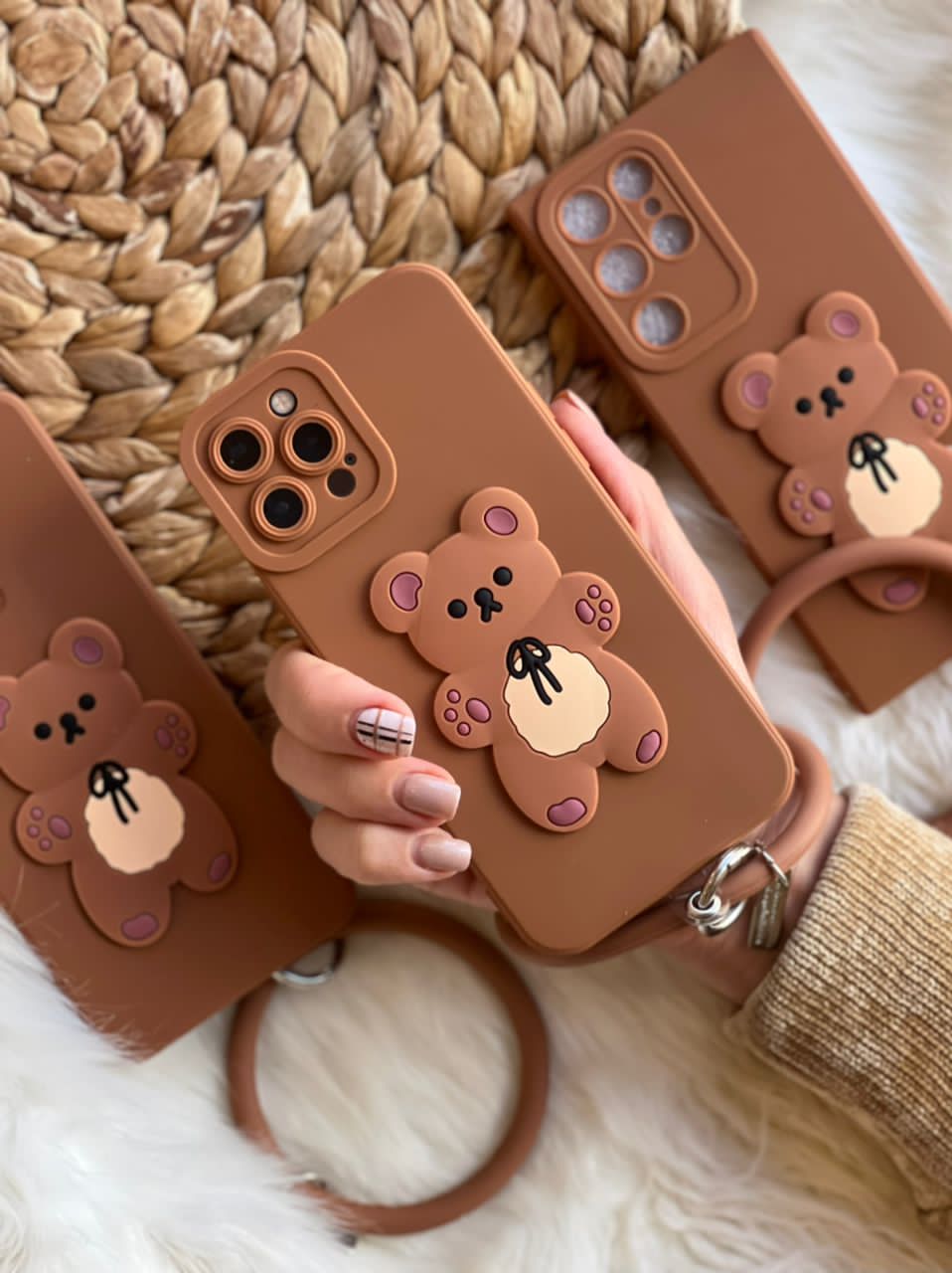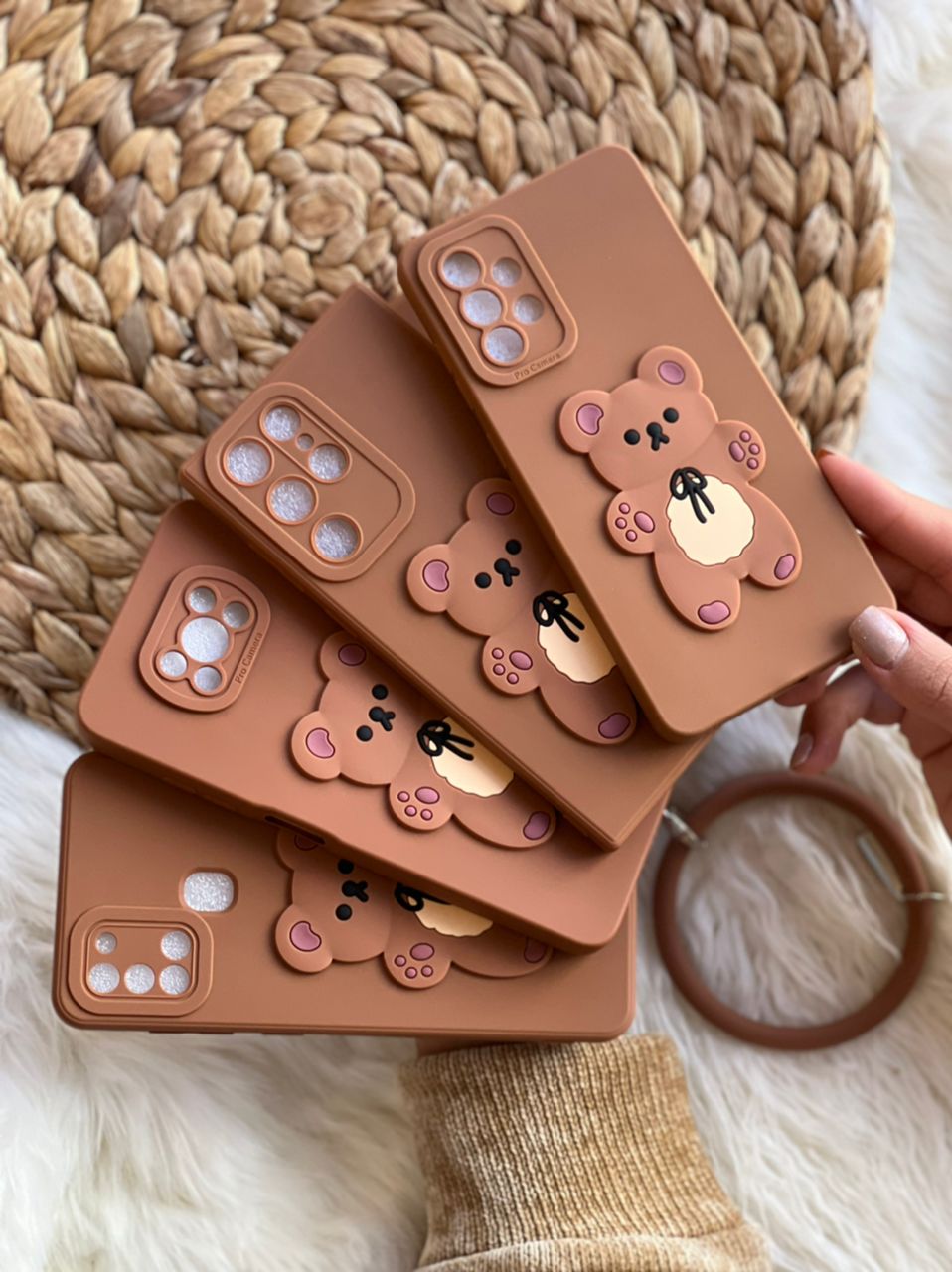 قاب موبایل آیفون خرس برانچ قهوه ای سیلیکونی + حلقه ست