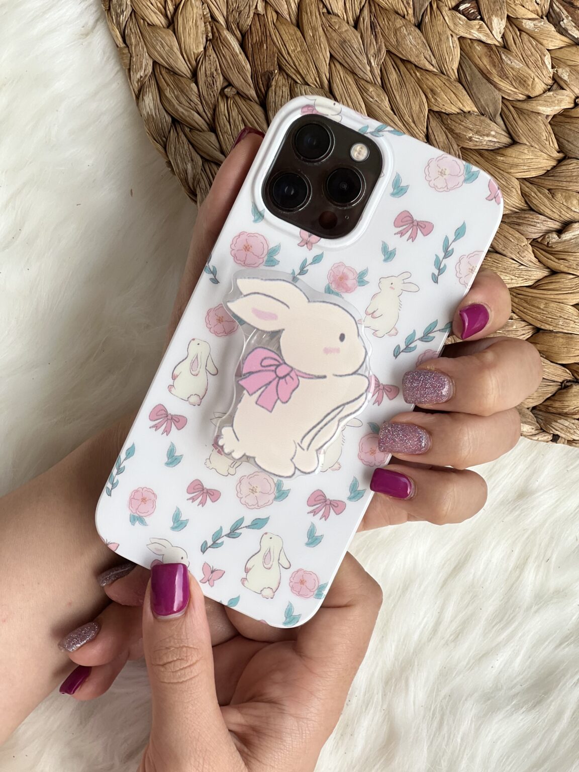 قاب موبایل آیفون خرگوش پاپیون دار + پاپسوکت ست