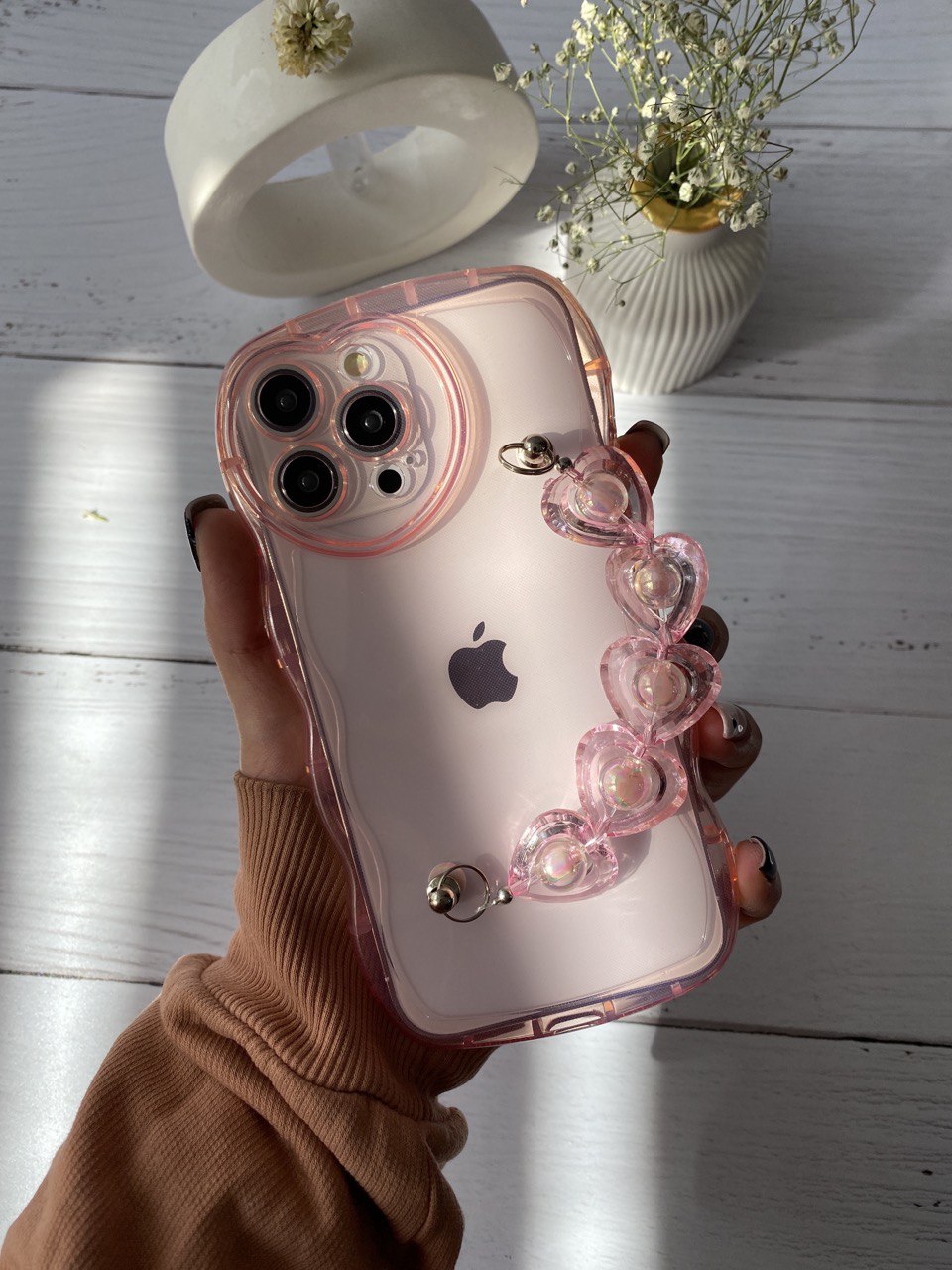 قاب موبایل آیفون گل لاله برجسته تولیپ صورتی