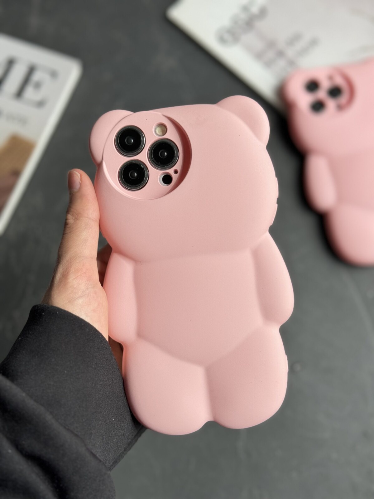 قاب موبایل خرس مینیمال پاستیلی سیلیکونی صورتی