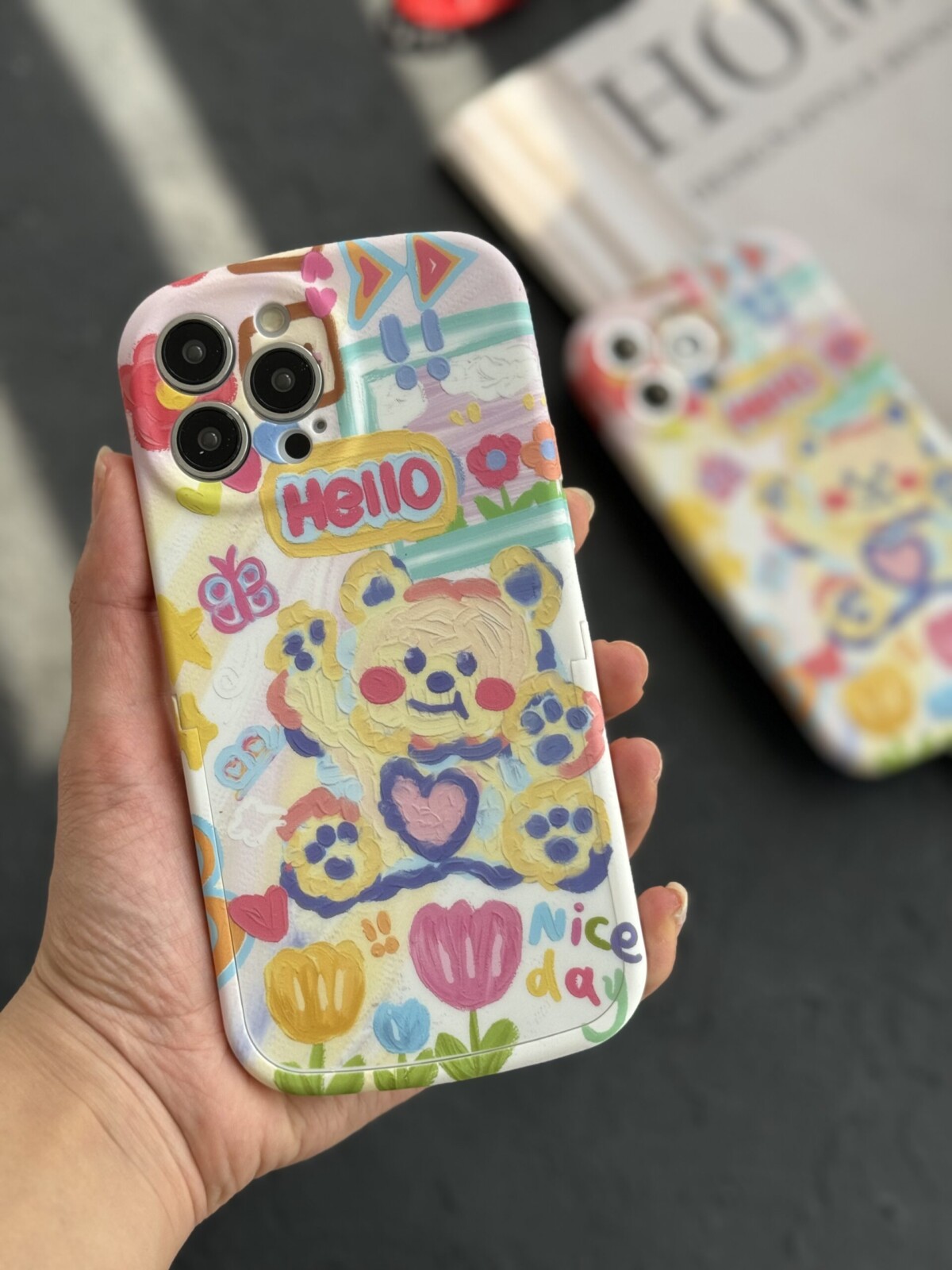 قاب موبایل آیفون خرس نقاشی آبرنگی پایه استند دار