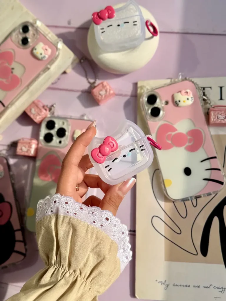 ایرپاد سیلیکونی کیتی پنجه صورتی با آویز (کدa0292)