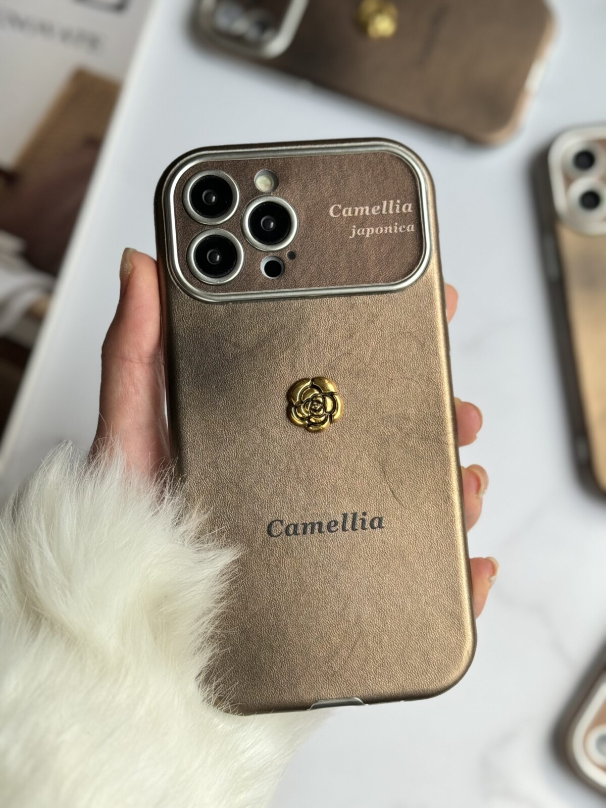 قاب موبایل آیفون کاملیا کاراملی محافظ لنزدار