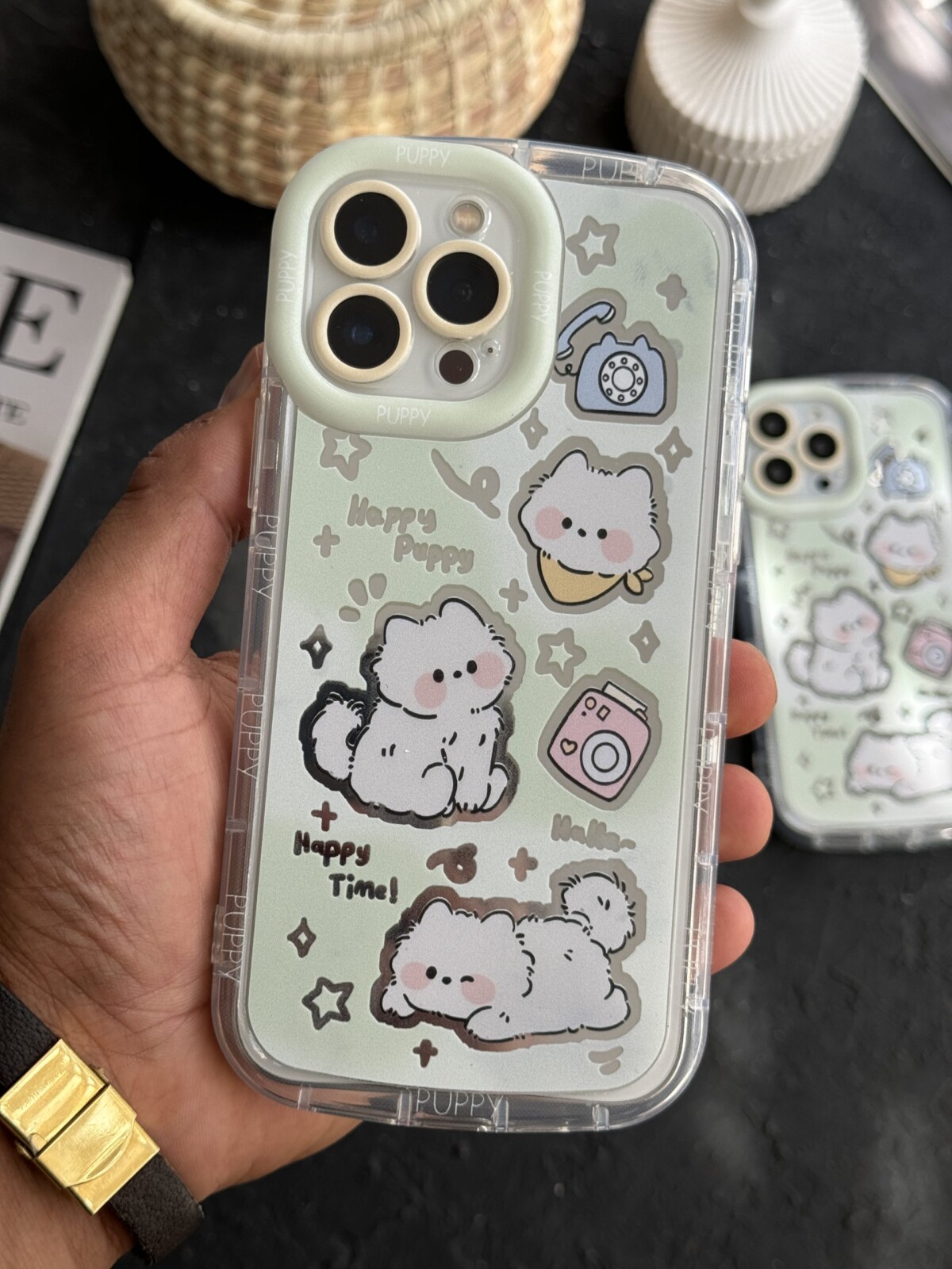 قاب موبایل آیفون سه سگ پاپی پاپی آیینه ای آبی