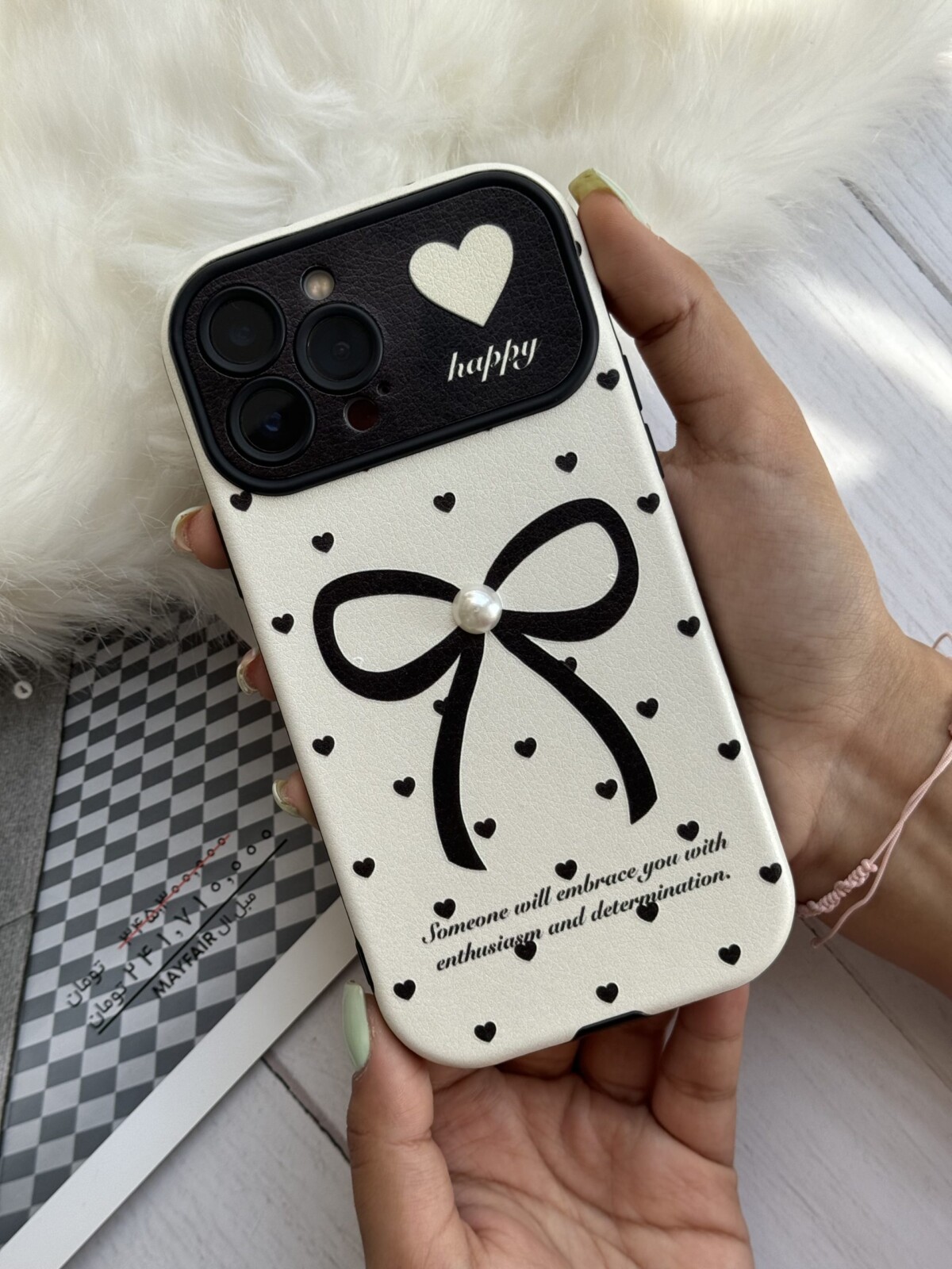 قاب موبایل آیفون پاپیون بزرگ تک مروارید قلب ریز