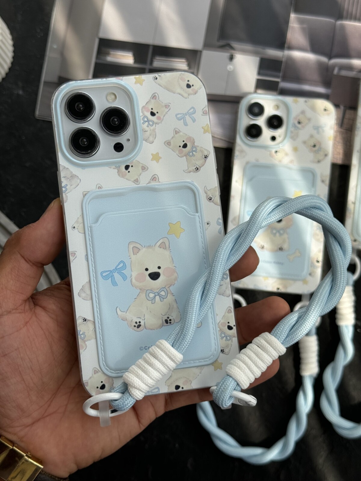 قاب موبایل آیفون سگ پاپی آبی بندست جاکارتی