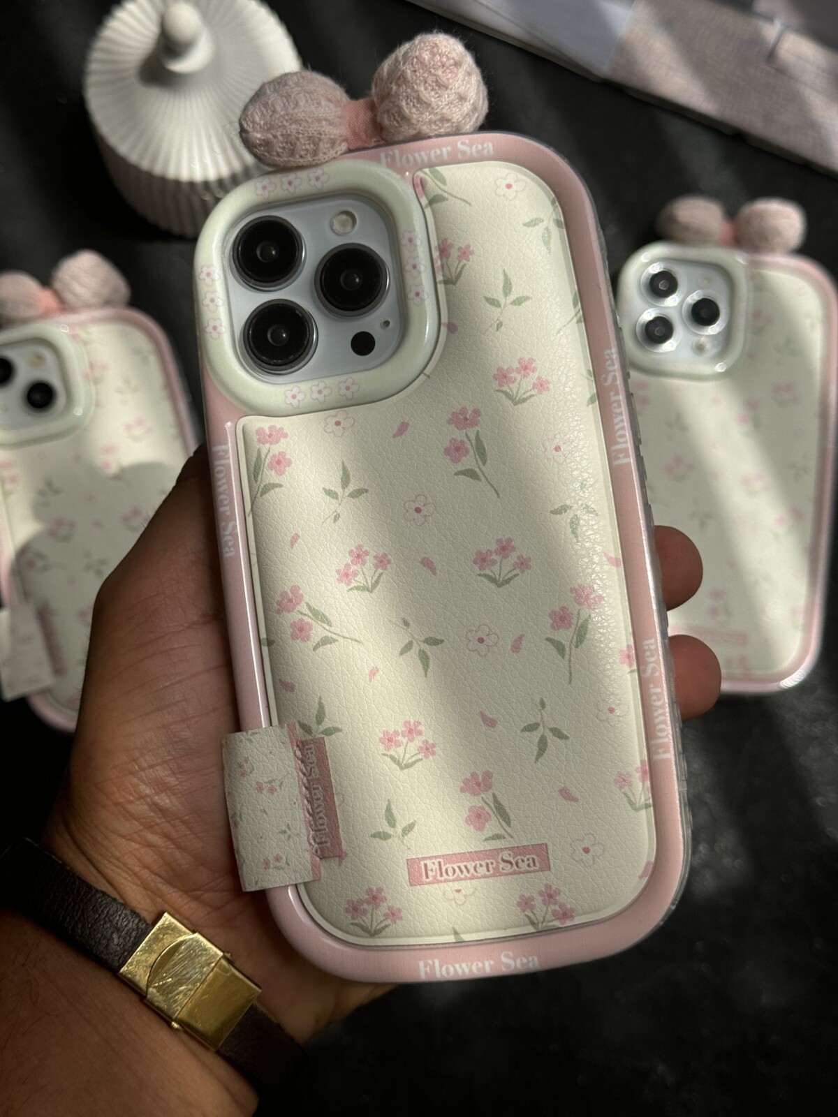 قاب موبایل آیفون گل دریا پاپیون بالشتی