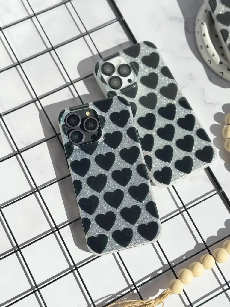 قاب شاینی قلب آینه ای با محافظ لنز رینگی نگینی (کدC1889)