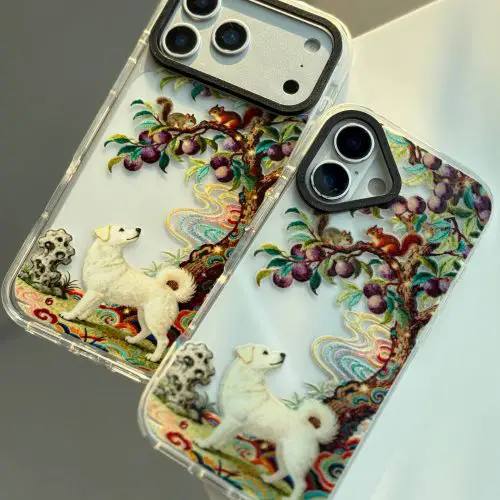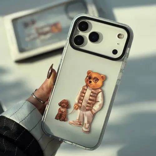 قاب گوشی آیفون و اندروید FILOU BEAR AND PUPPY آنتی شوک دور سفید