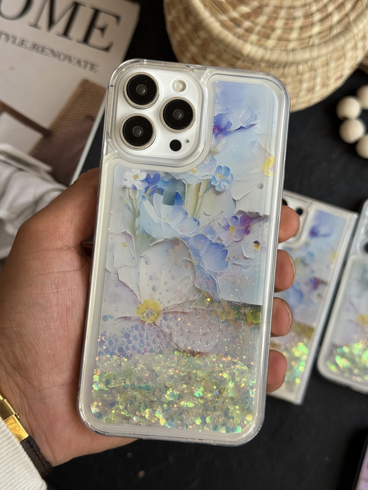 قاب موبایل ( آیفون – سامسونگ ) گل لوندر آکواریومی متحرک پولکی
