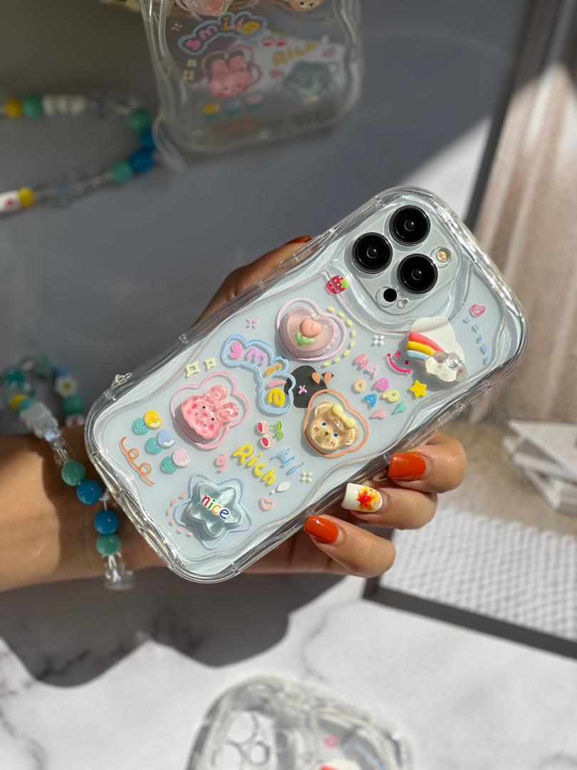 قاب موبایل سامسونگ اپوکسی بیرنگ روز شاد خرس و خرگوش برجسته + آویزست