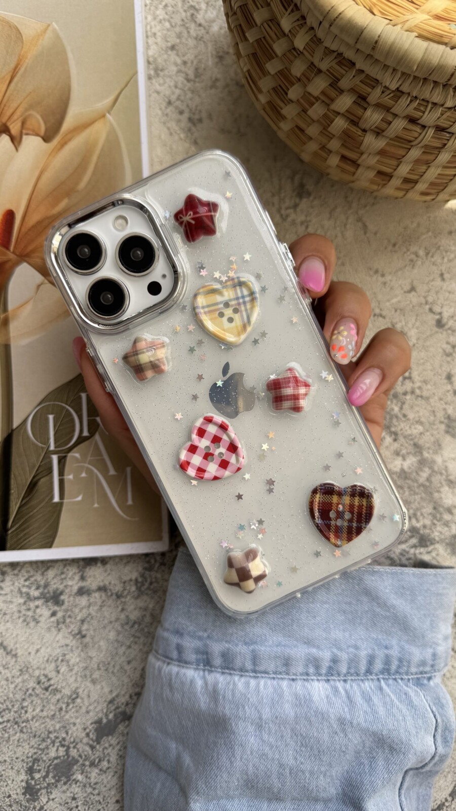 قاب موبایل آیفون ستاره و دکمه قلبی شفاف