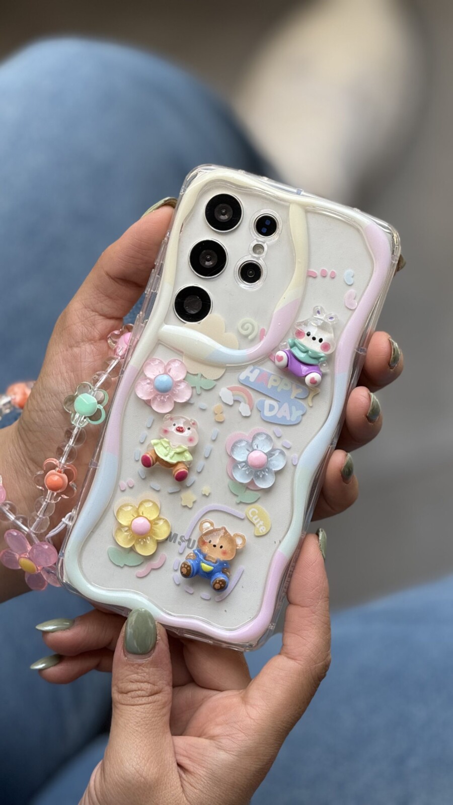 قاب موبایل ( سامسونگ – آیفون ) خرگوش و خرس بامزی + بندست بابونه
