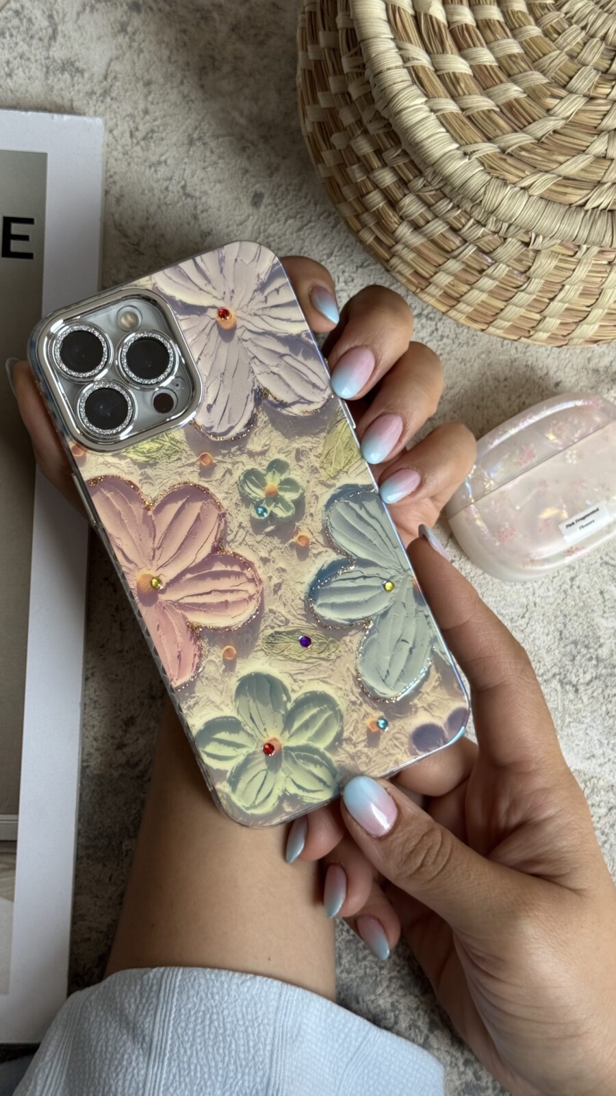 قاب موبایل ( آیفون _ سامسونگ ) گل آبرنگی ژله ای سه بعدی