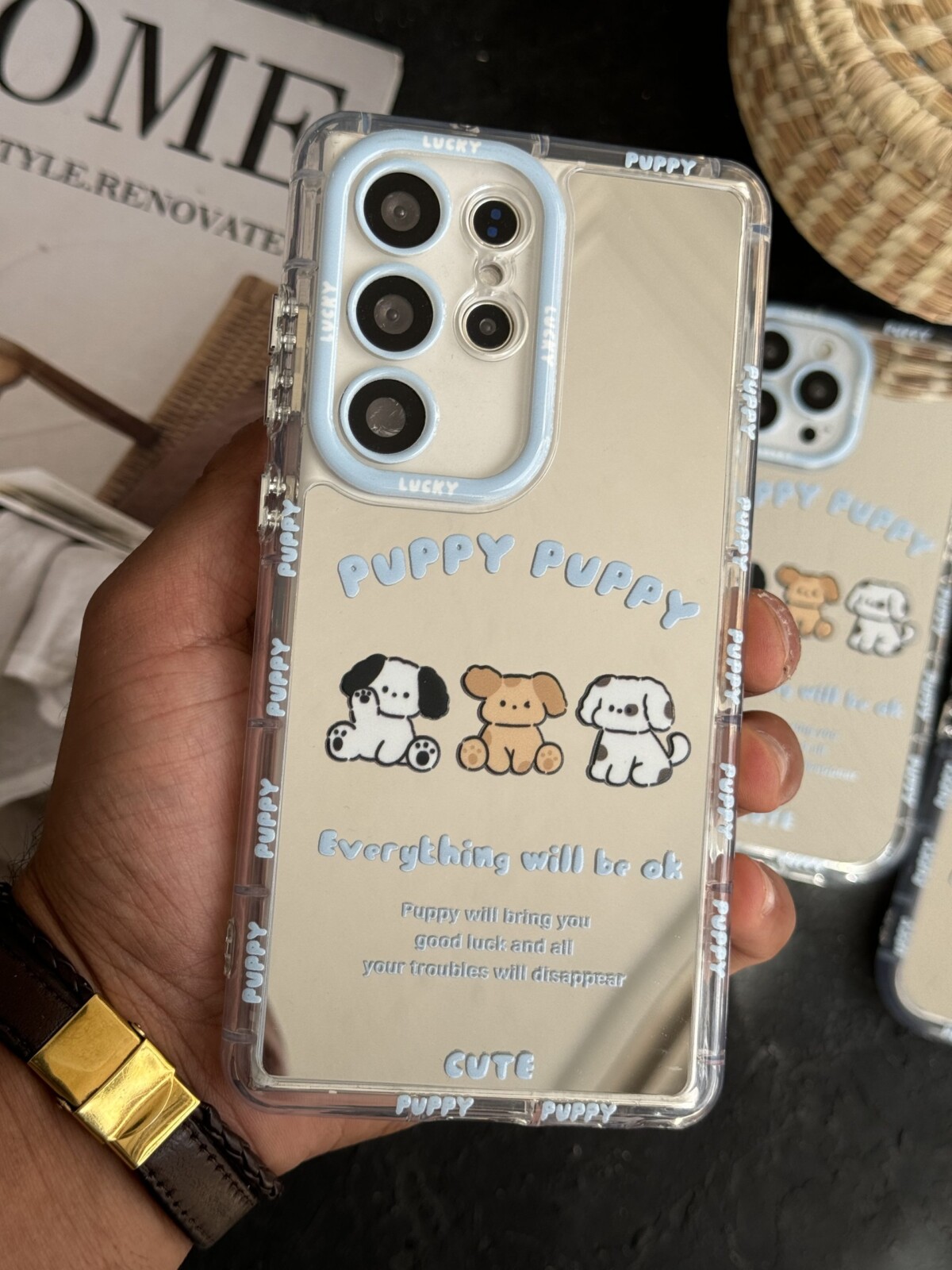 قاب موبایل سامسونگ سه سگ پاپی پاپی آیینه ای آبی