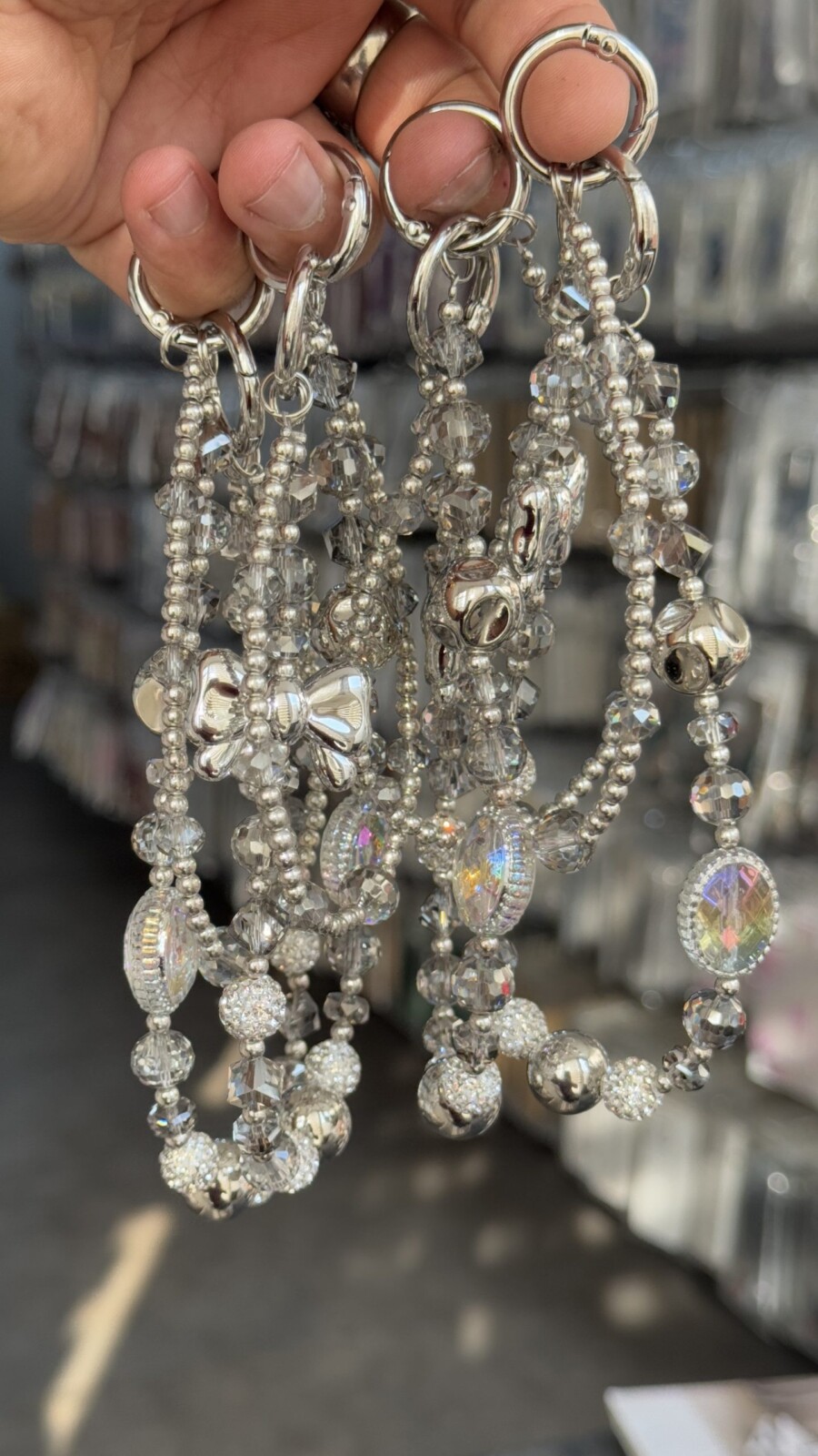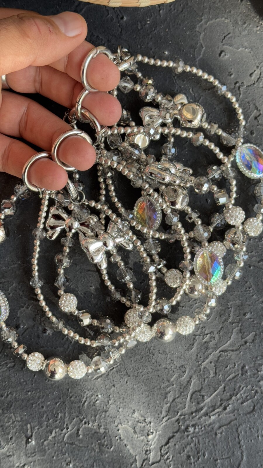 بند و آویز نگین انگشتری درشت پاپیون نقره ای