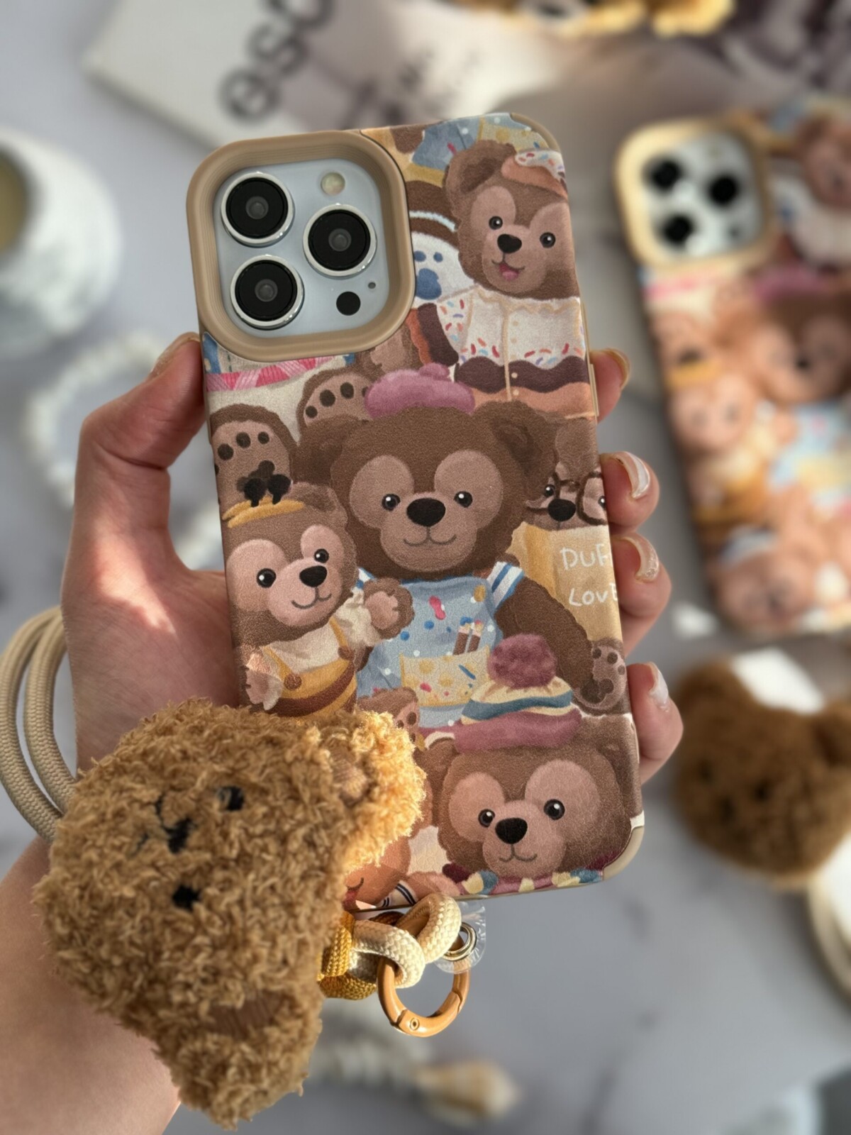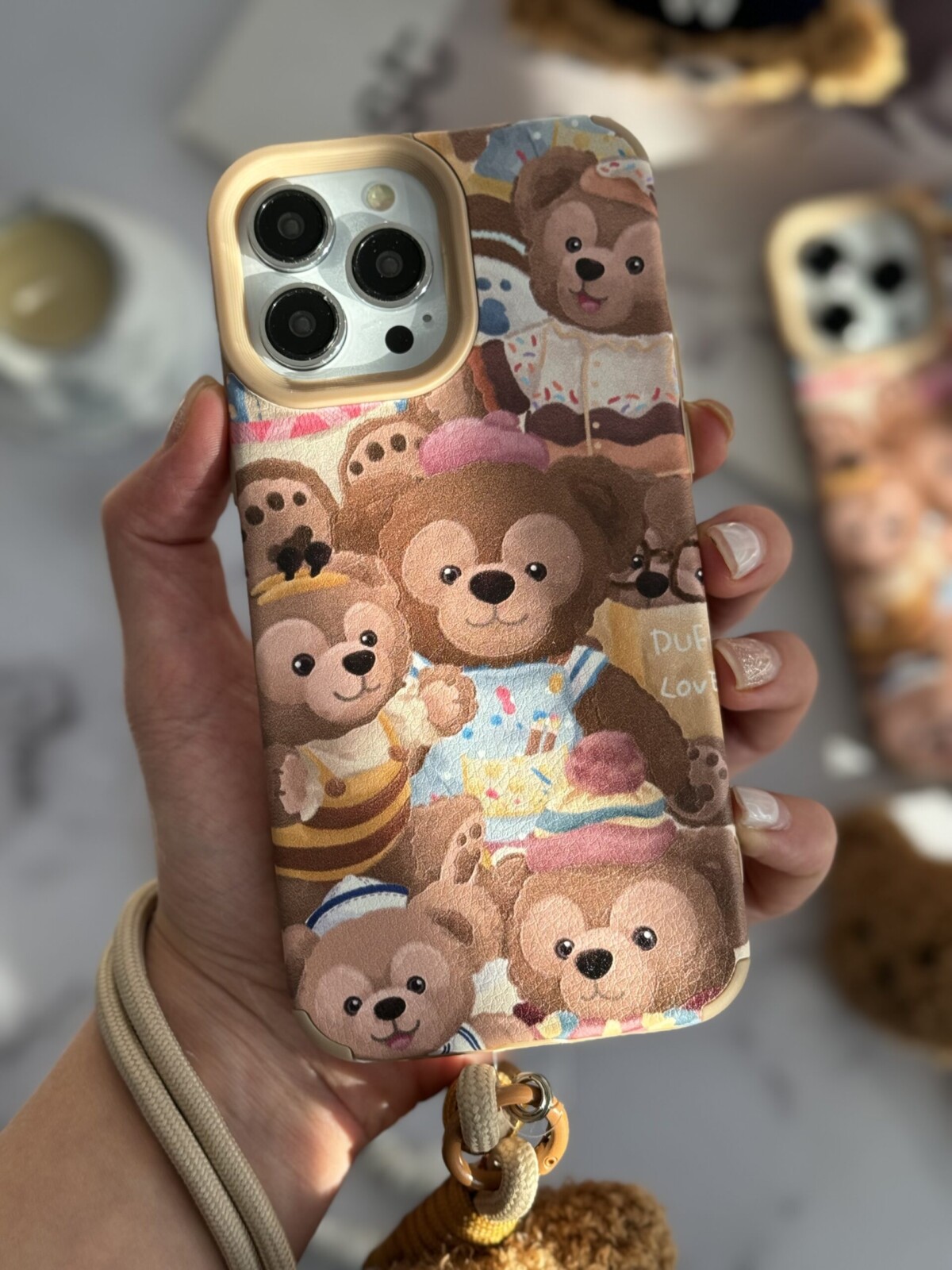 قاب موبایل آیفون خانواده خرسی + بند کوتاه خرسی