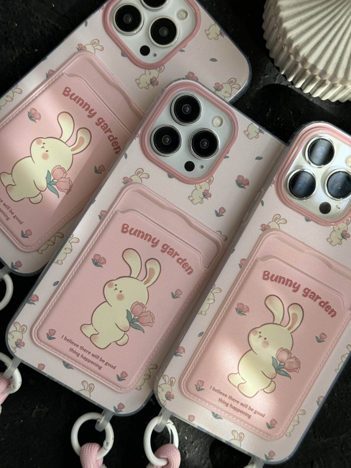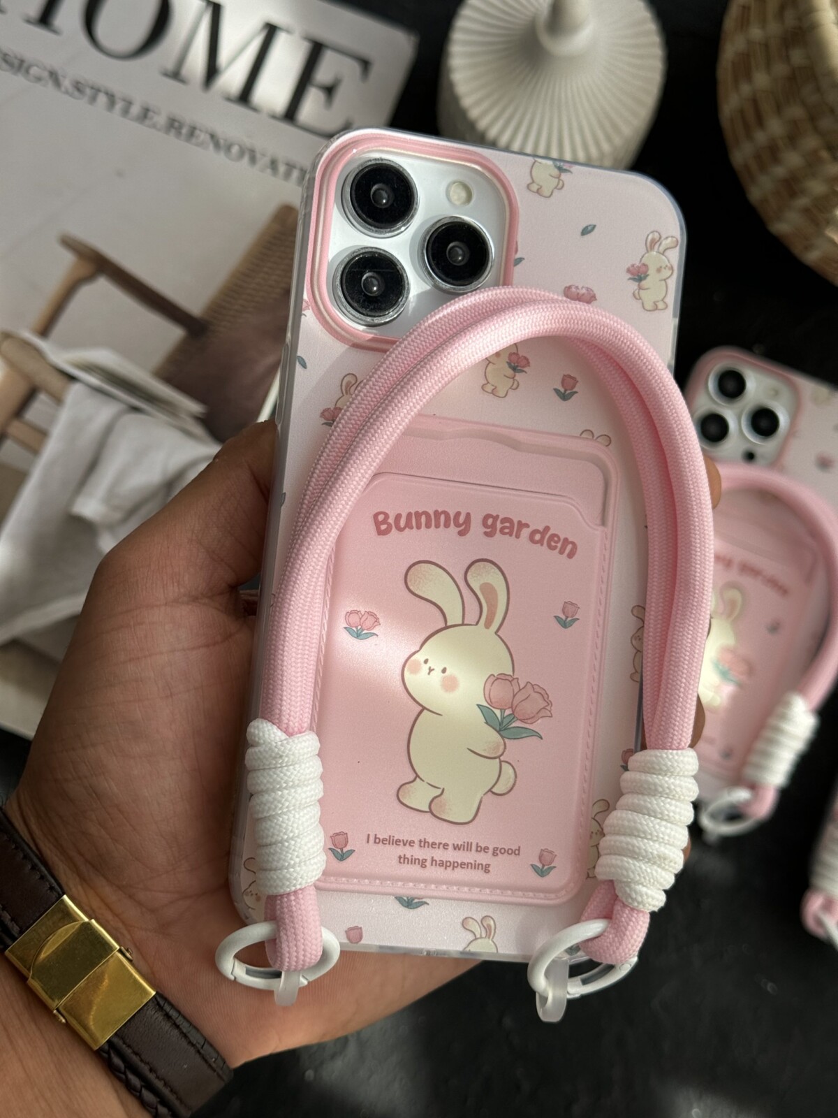 قاب موبایل آیفون خرگوش بانی گاردن گل رز ریز جاکارتی و بندست