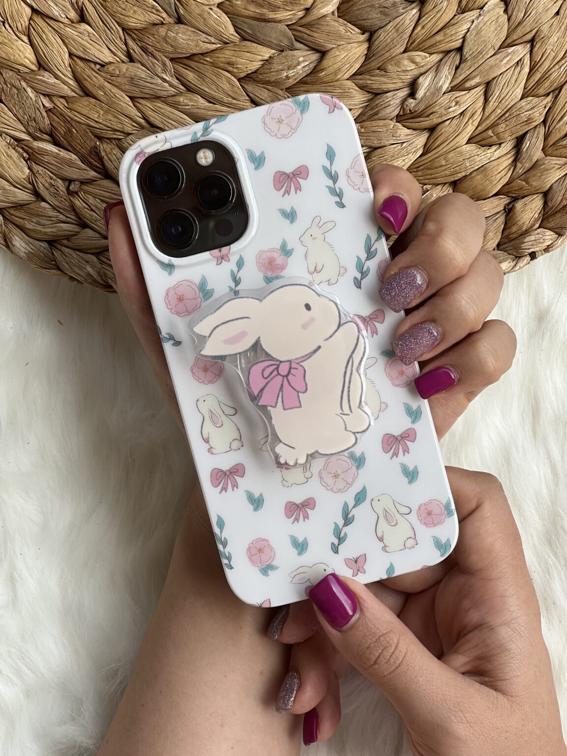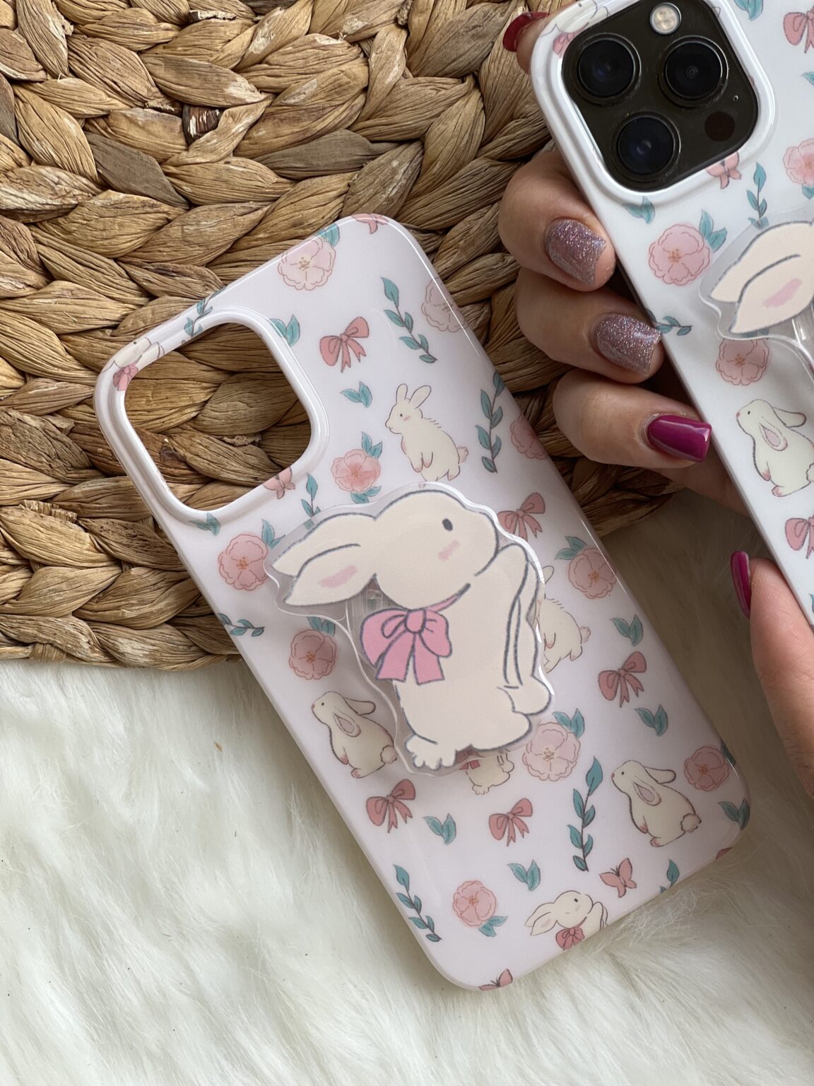 قاب موبایل آیفون خرگوش پاپیون دار + پاپسوکت ست