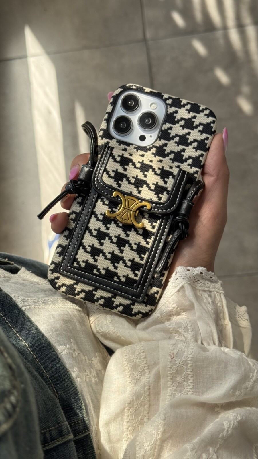 قاب موبایل آیفون زبرا پارچه ای جاکارتی سلین + بندست بلند