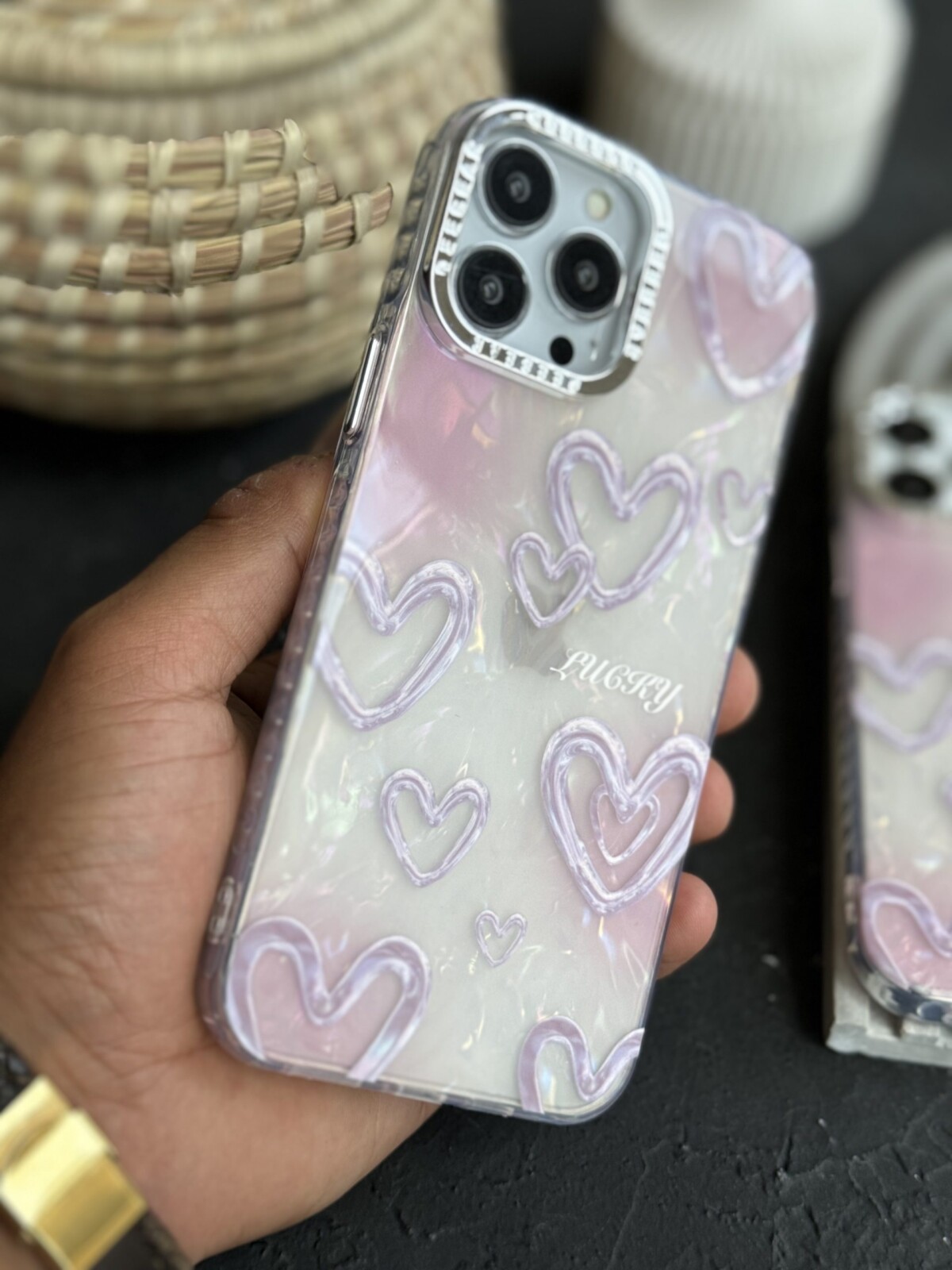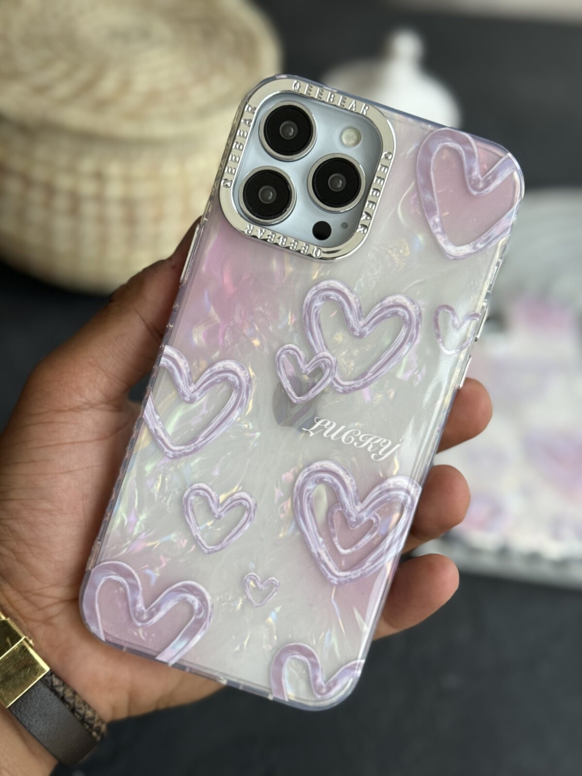 قاب موبایل ( آیفون – سامسونگ ) قلب مرکوری صدفی صورتی