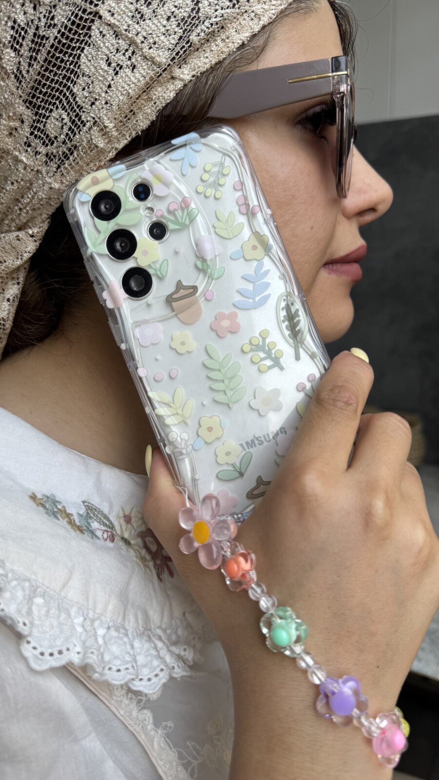 قاب موبایل ( آیفون – سامسونگ ) گل سرخس بلوط + بندست بابونه