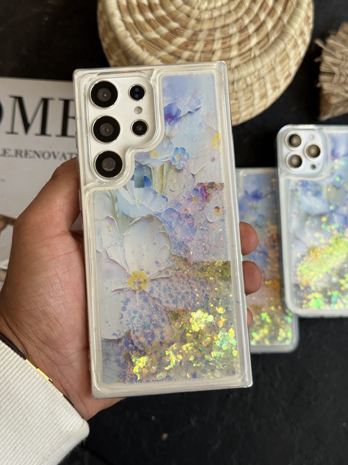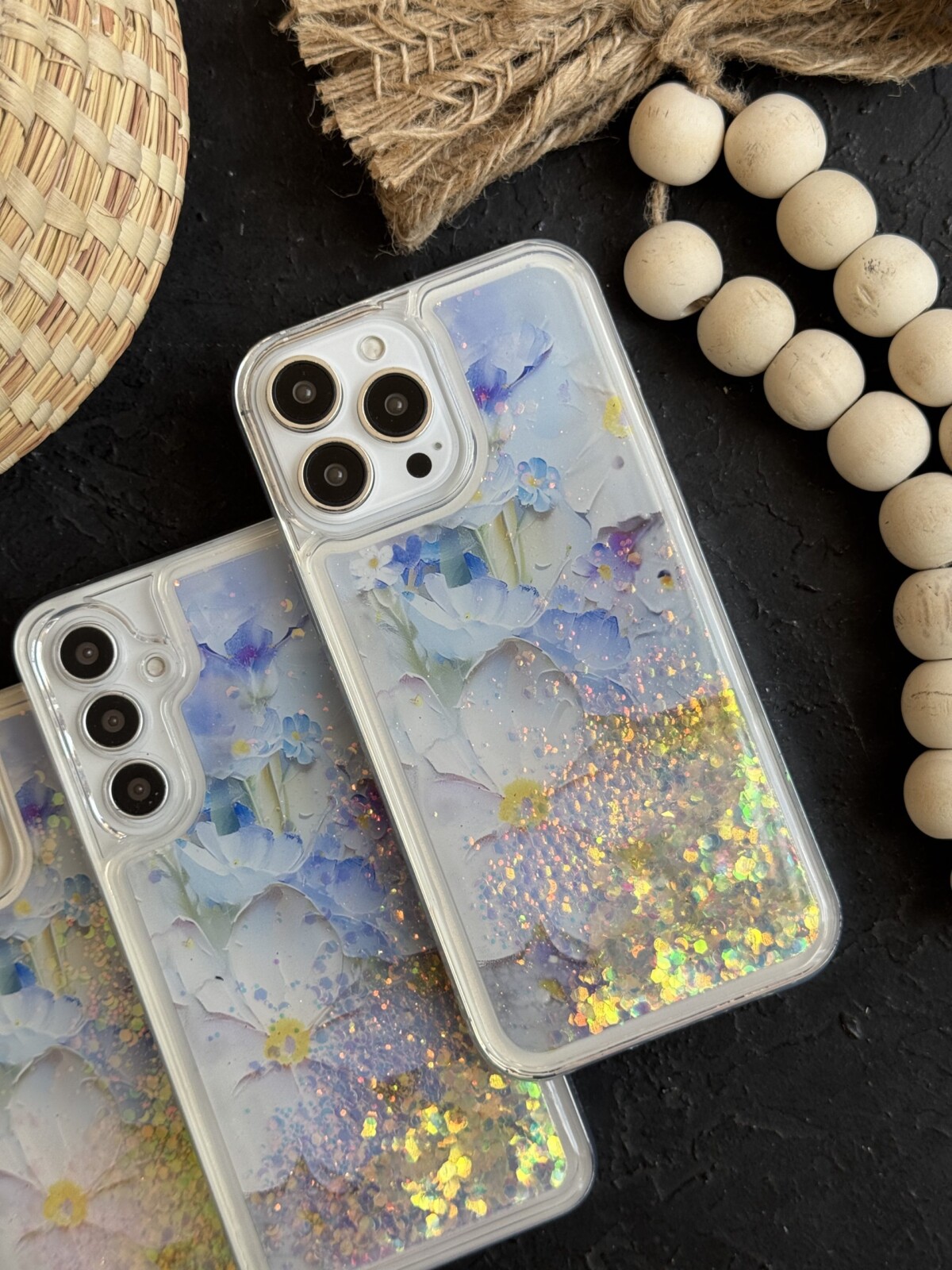 قاب موبایل ( آیفون – سامسونگ ) گل لوندر آکواریومی متحرک پولکی