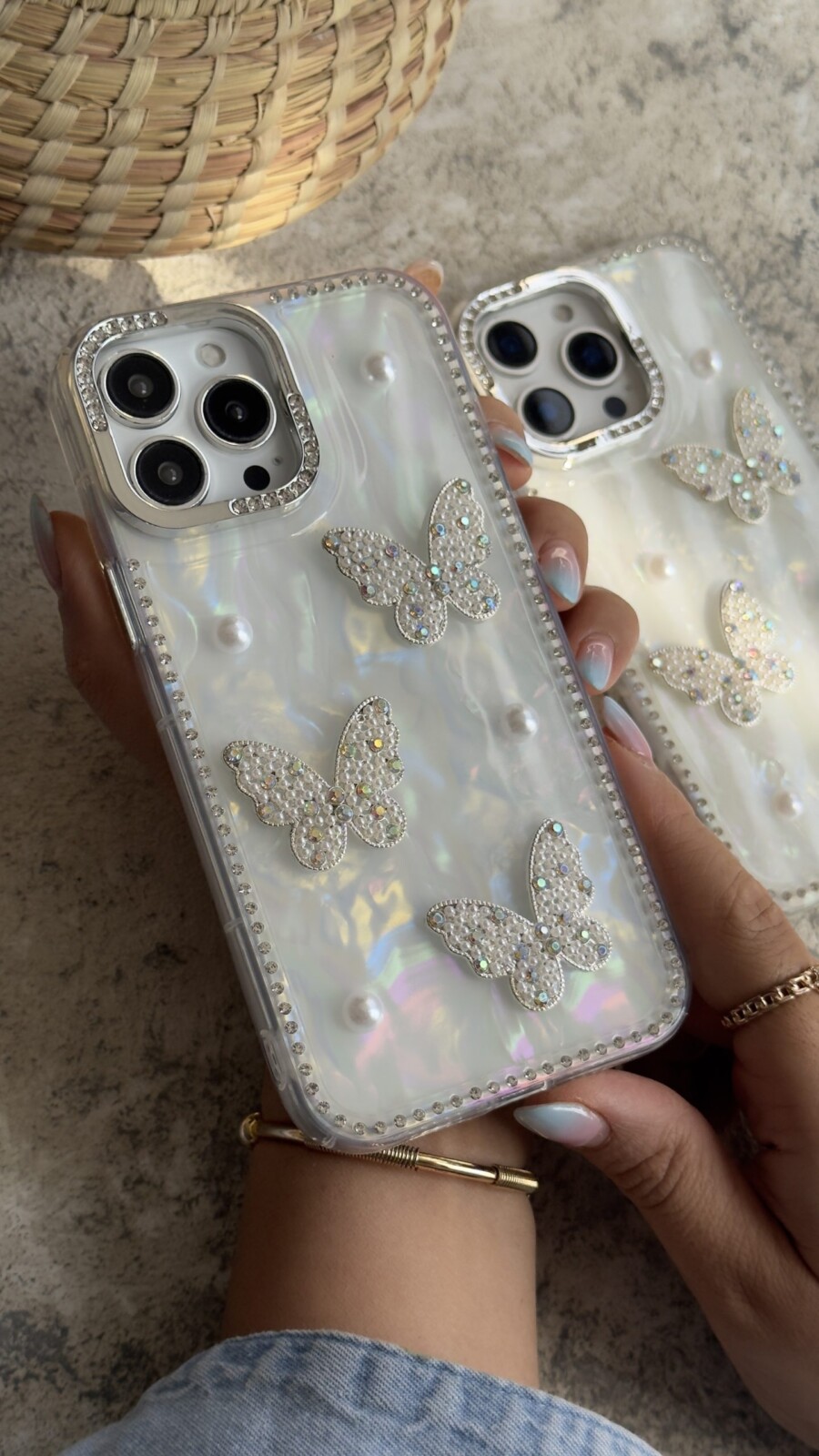 قاب موبایل آیفون سه پروانه دور نگین