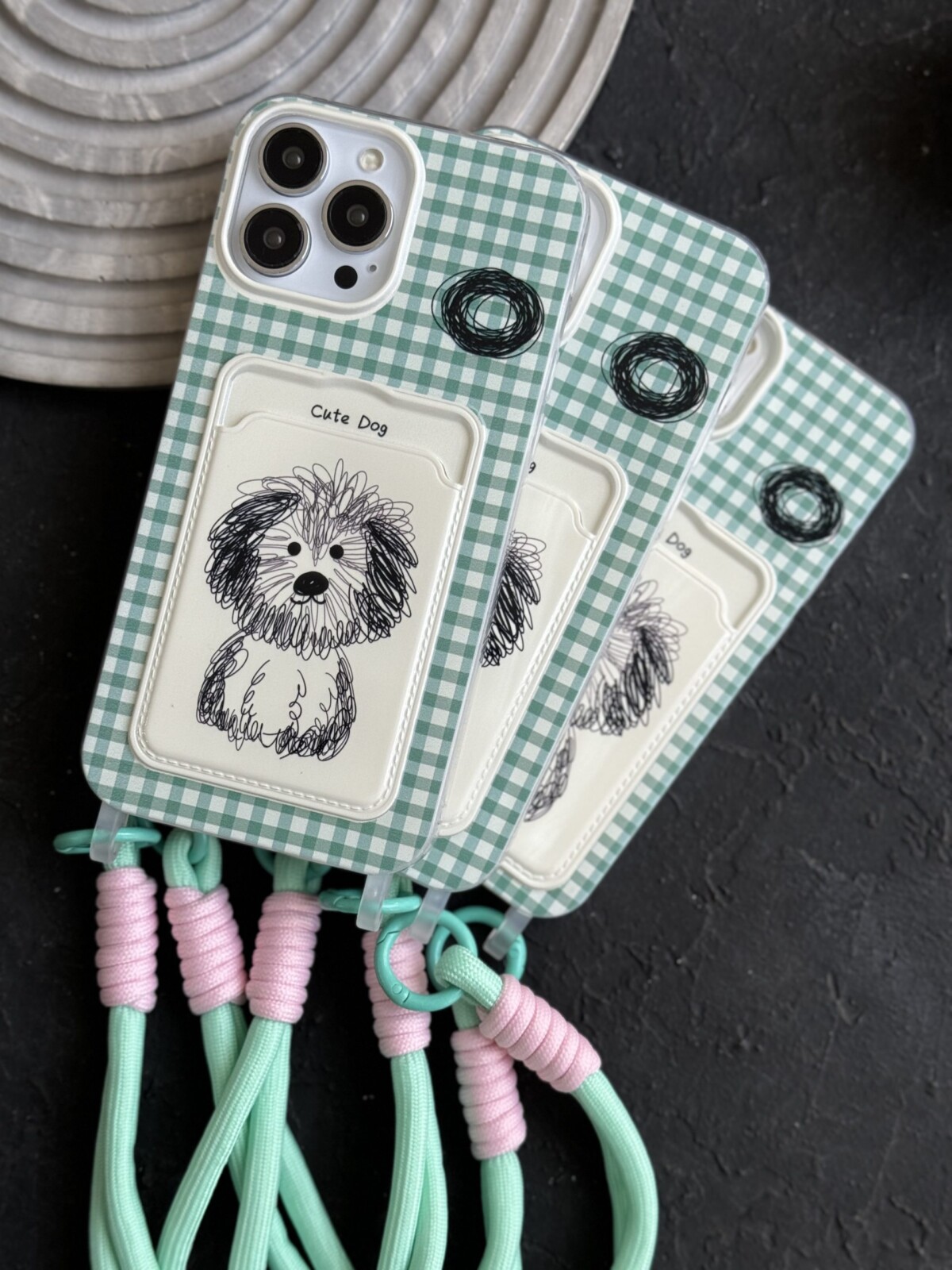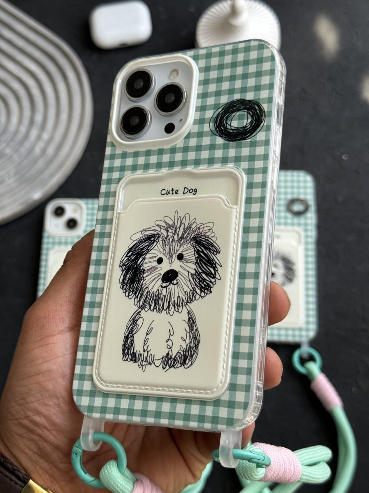 قاب موبایل آیفون سگ نقاشی کیوت جاکارتی + بندست