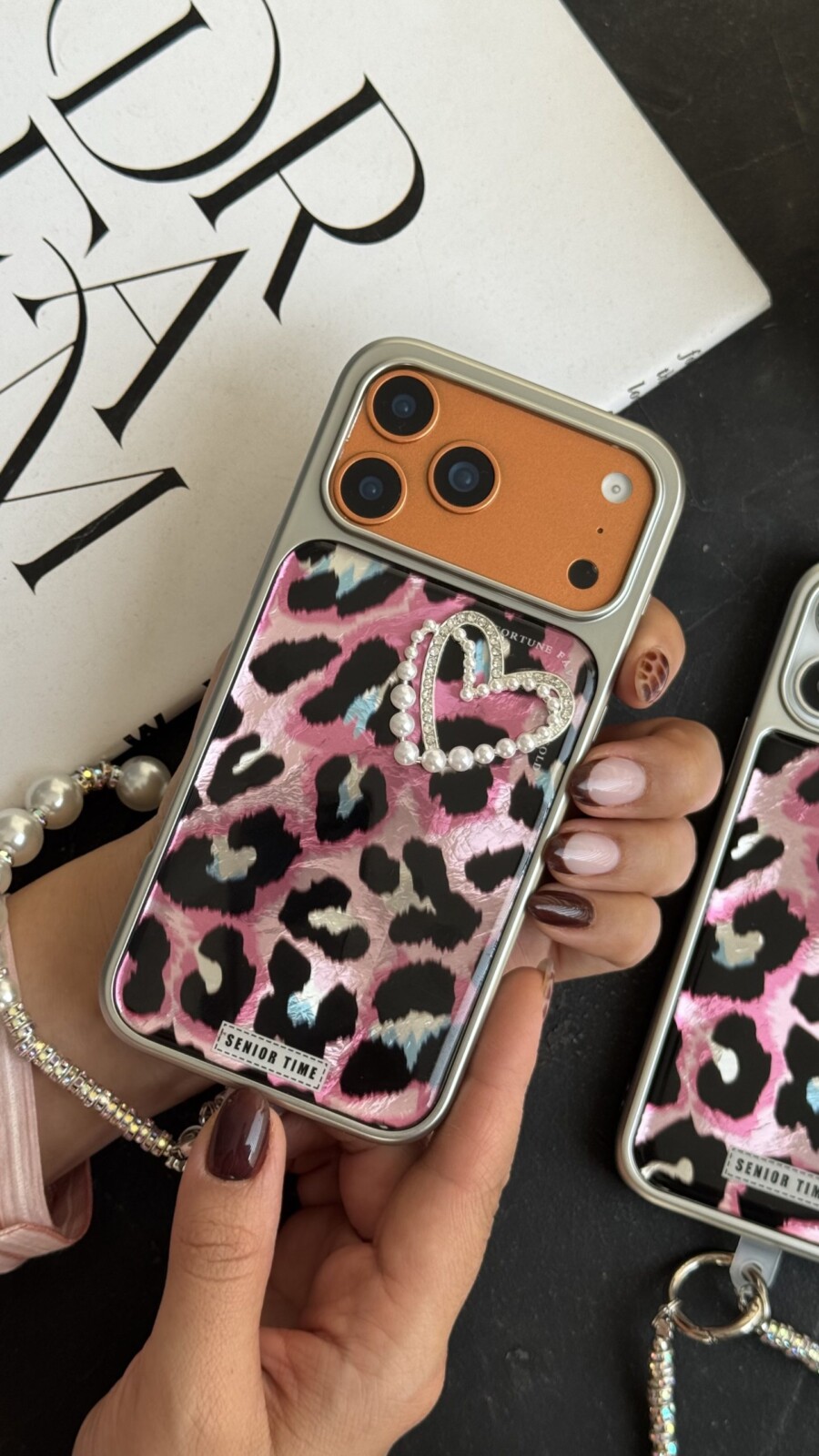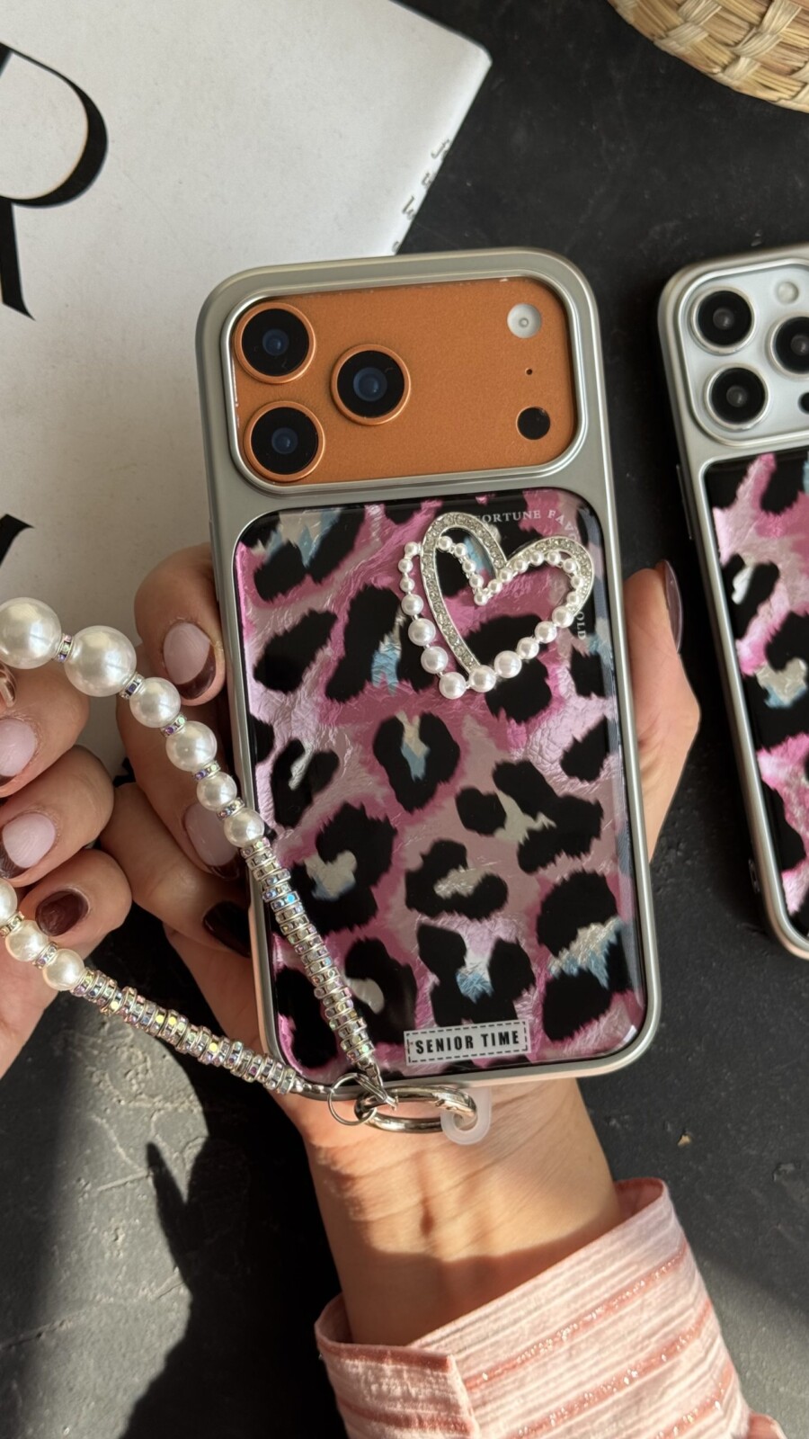 قاب موبایل آیفون سینیور تایم قلب صورتی + بندست با طراحی چشمنواز و جزئیات درخشان، مخصوص افرادی است که به استایل و ظاهر گوشی خود اهمیت زیادی میدهند. ترکیب طرح قلبی درخشان با پسزمینهی صورتی براق، ظاهری مدرن و دخترانه ایجاد کرده که در عین سادگی، لوکس و خاص است.