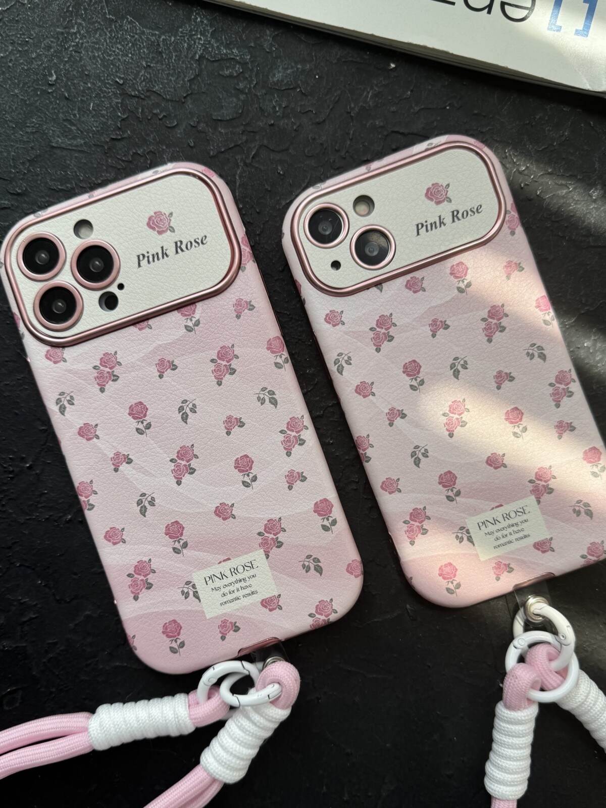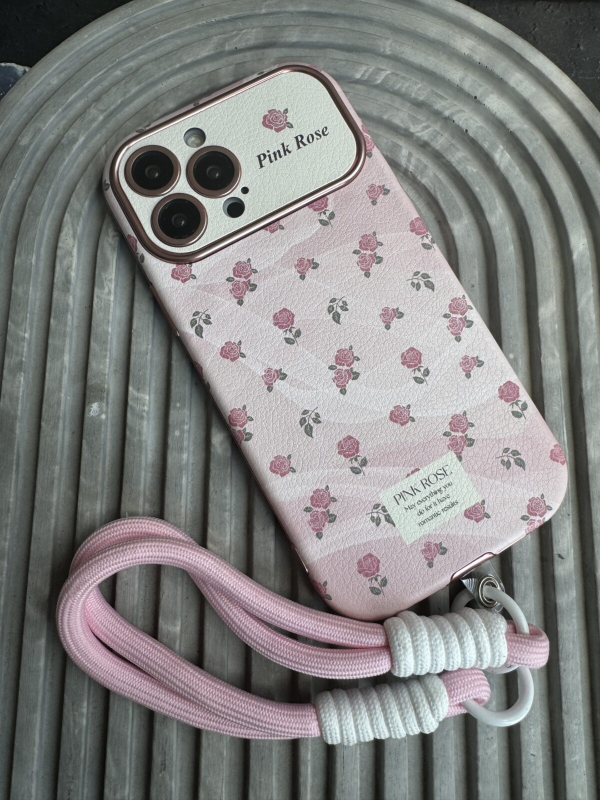 قاب موبایل آیفون شاخه گل رز صورتی بدون بند