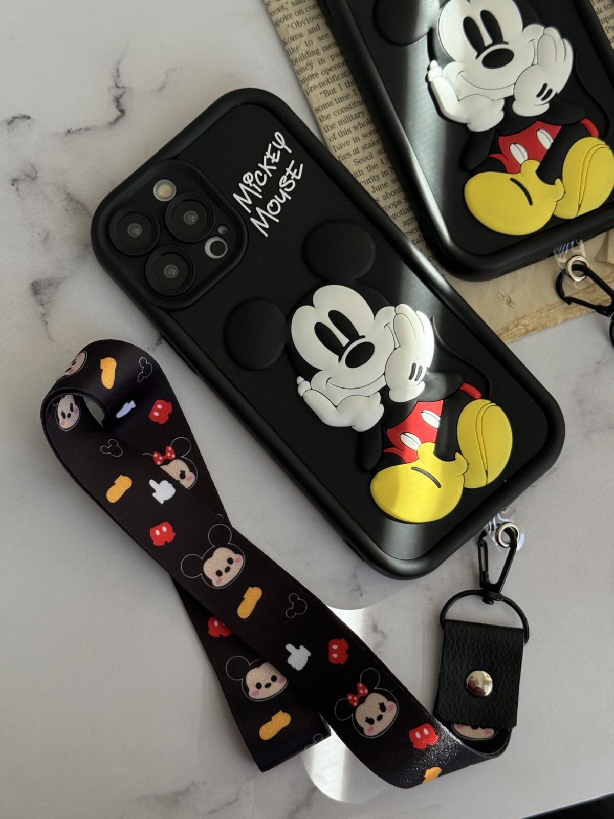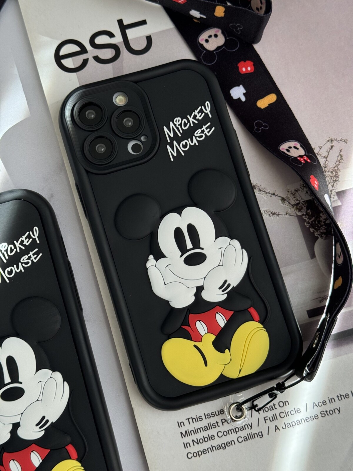 قاب موبایل آیفون میکی برجسته سولید مشکی بدون بند