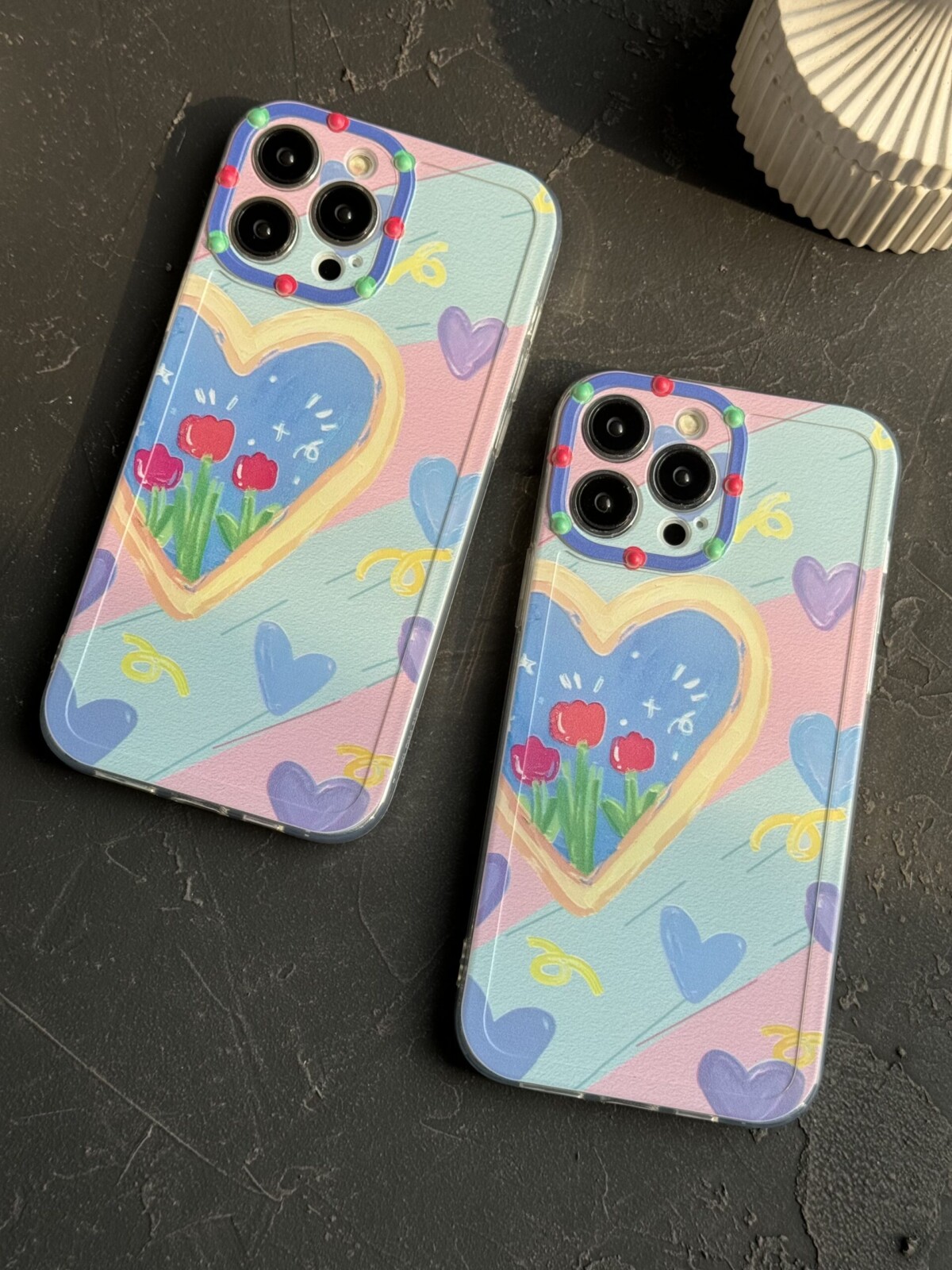 قاب موبایل آیفون نقاشی کودک درون قلبی آبی بنفش محافظ لنزدار ( 3005 )
